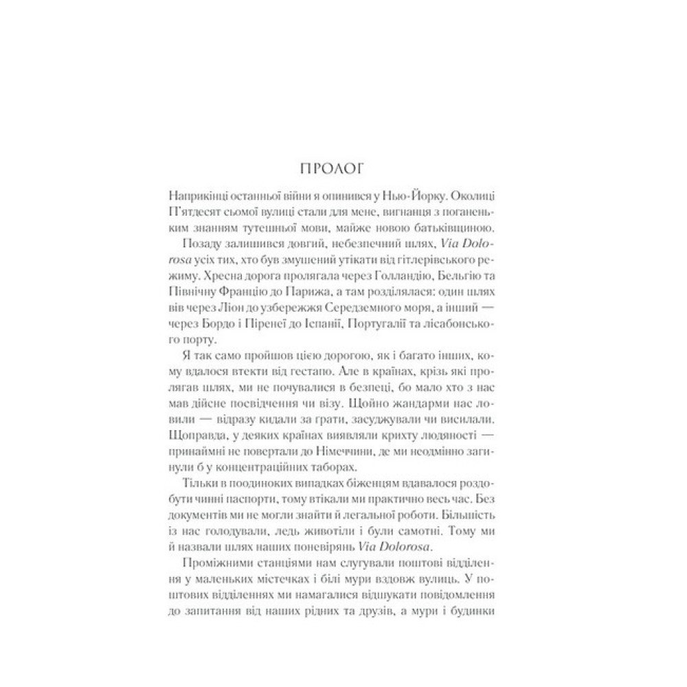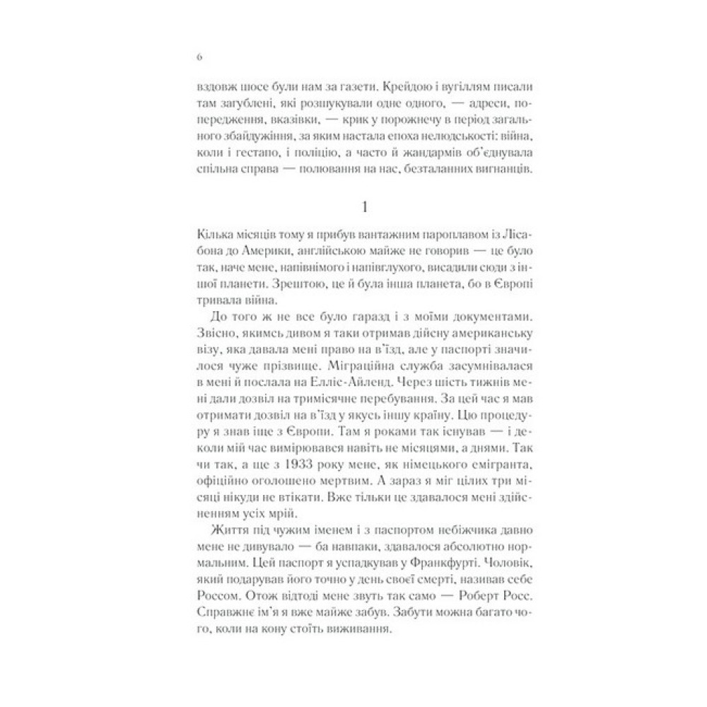 Багатьом біженцям Америка здавалася землею обітованою, де немає ні війни, ні злиднів. Журналіст Роберт Росс два роки переховувався від нацистів у Брюссельському музеї. Тепер він може вдихнути на вільні груди. Та де взяти сили, щоб почати життя наново? Роберт не один. Він бачить долі інших біженців. Лікарі, торговці картинами, манекенниці, актори — усі вони по-своєму намагаються впоратися з тим болем, що лишила по собі війна. Хтось топить горе в алкоголі, хтось кидається в роботу. Одні продовжують боротьбу з останніх сил. Інші складають зброю. Різні люди, об’єднані тавром «вигнанці», спустошені тугою за власним минулим та втомлені пошуком. Чи віднайдуть вони своє місце в цьому потрощеному світі?..