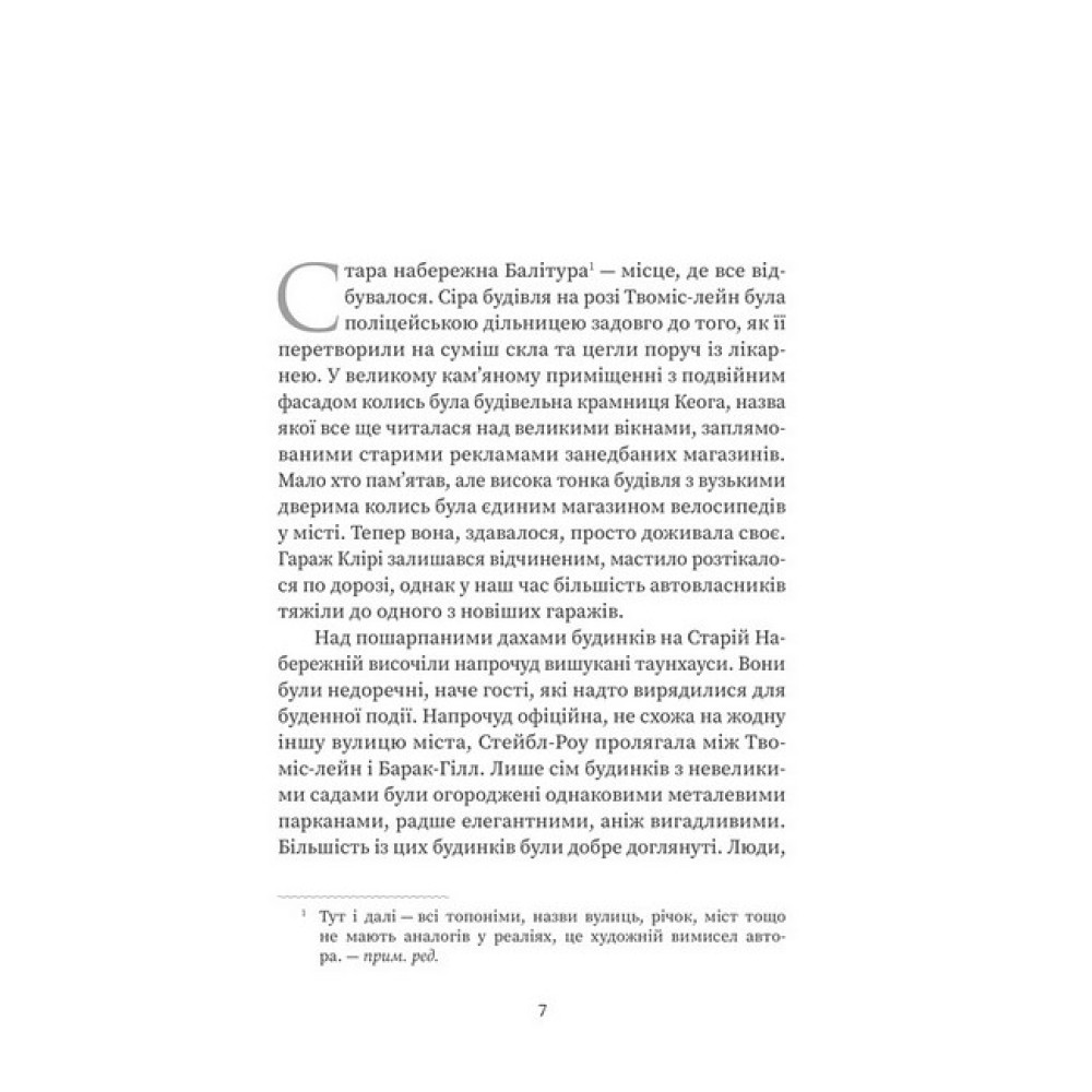 Роман автора міжнародних бестселерів і ведучого «Шоу Грема Нортона» — це історія про сімейну драму, поєднання літературної фантастики та містики. Дія роману розгортається у вигаданому ірландському містечку Балітур. Вчителька англійської мови Керол Кротті втрачає чоловіка, і минають роки, перш ніж вона знову закохується. Ніхто не розуміє, що вона бачить у Деклані Баррі, літньому чоловікові, дружина якого зникла багато років тому. Коли пізніше у Деклана діагностують ранню стадію хвороби Альцгеймера, його діти, Кілліан і Саллі, переселяють його до будинку для літніх людей. Керол змушена виїхати з дому, у якому вони жили разом з Декланом. Згодом Керол дізнається правду про зниклу дружину Деклана. Взаємини героїв, спогади і реалії водночас відкривають таємницю вбивства, яку довго приховували… Загадковий і непередбачуваний сюжет роману нікого не залишить байдужим.