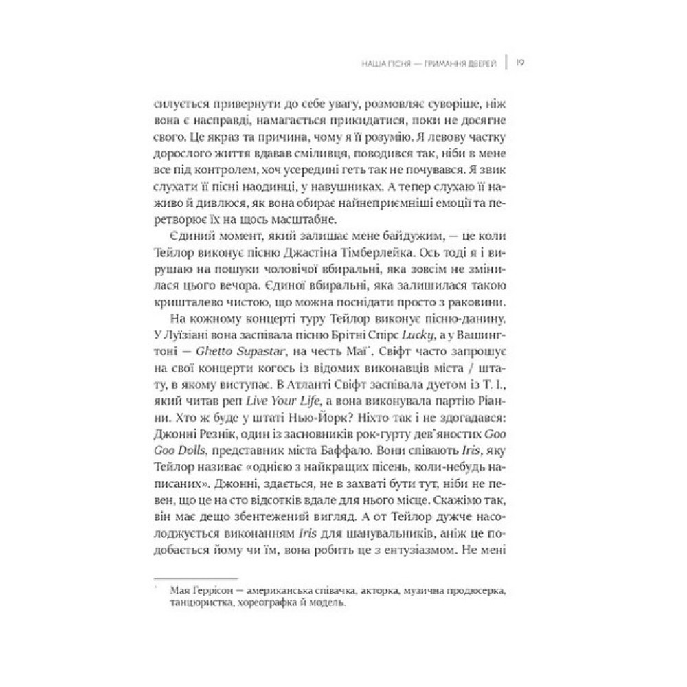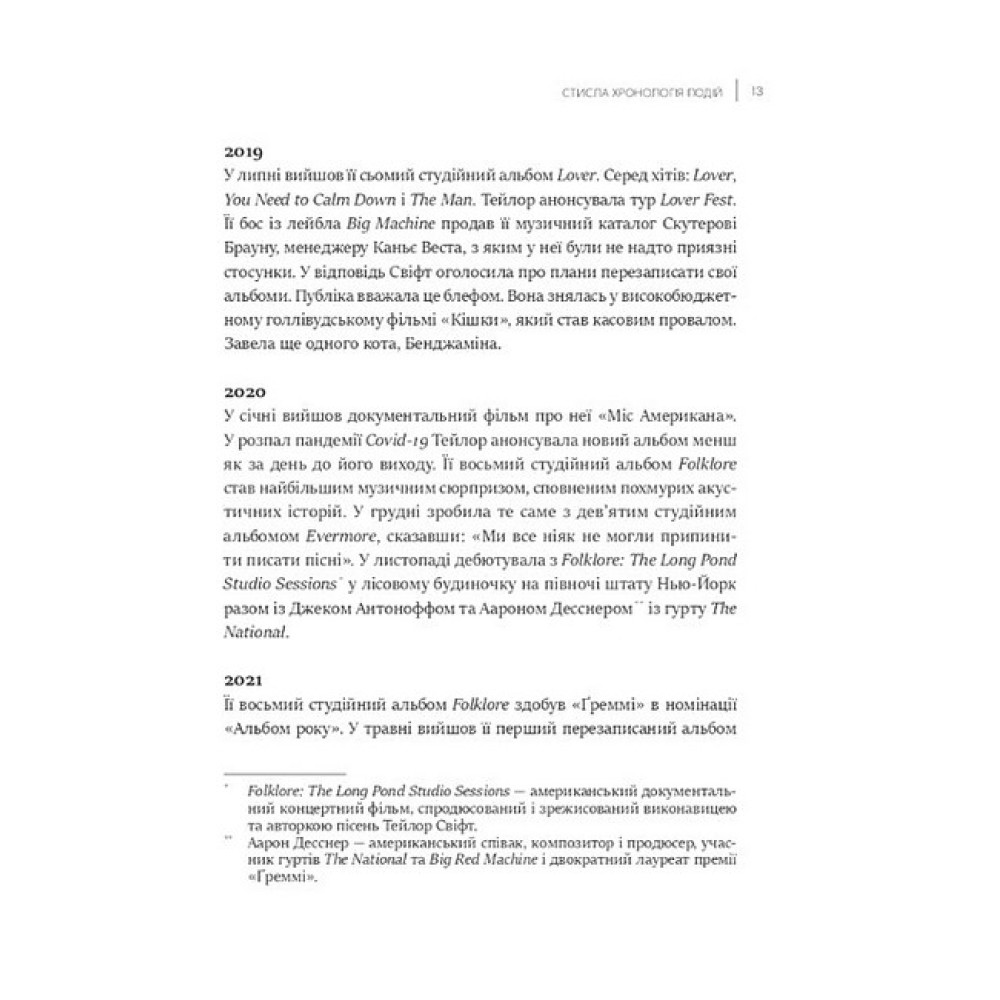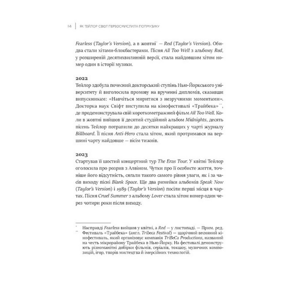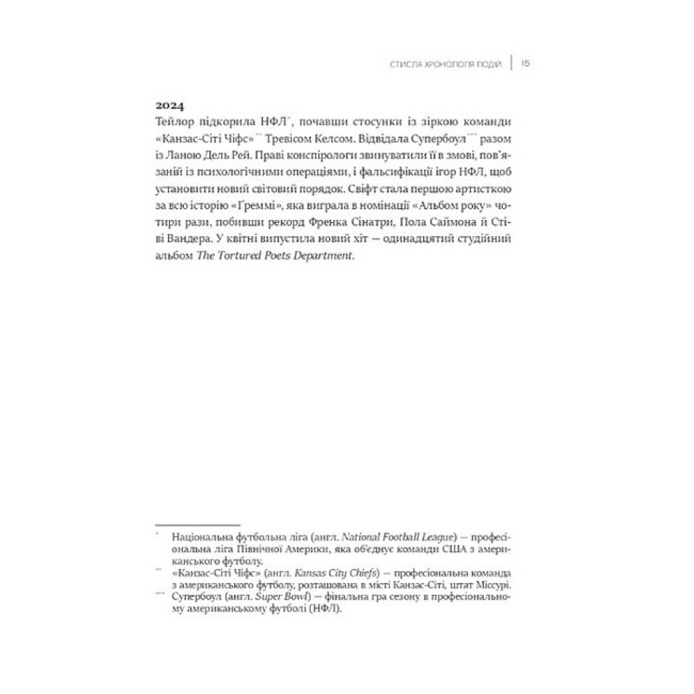 Її музика стирає кордони між поколіннями й культурами. Такої постаті, як Тейлор Свіфт, світ іще не знав. Нині вона на піку популярності, культурного й комерційного впливу, приголомшливої активності та творчості. А втім, Тейлор не полишає цього рівня впродовж останніх вісімнадцяти років.Ніхто не розповість цю історію краще, ніж Роб Шеффілд — автор бестселерів і лауреат премій, відомий за книжками Dreaming the Beatles, On Bowie та Love Is a Mix Tape. Легендарний журналіст Rolling Stone, який висвітлював кар'єру Тейлор на кожному її етапі — від перших кроків до туру Eras. Шеффілд проникає в саму суть Свіфт, її музики, текстів, зв’язку з фанатами та потужної емоційної сили.