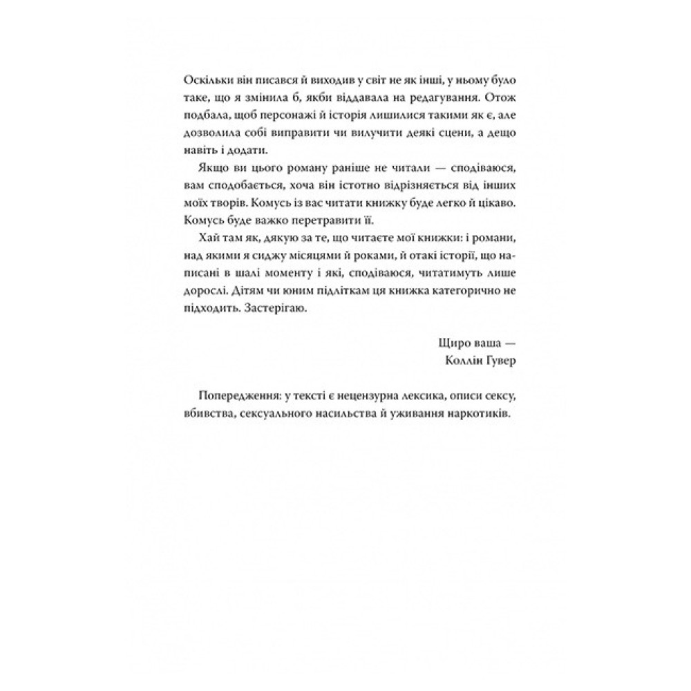 Заради тих, кого Слоан любить, вона ладна піти в самісіньке пекло. Власне, так вона щодня й робить. Опинившись у тенетах привабливого, але небезпечного Аси Джексона, відомого наркоторговця, дівчина нарешті отримує соломинку, за яку можна вхопитися — навіть якщо доводиться зрадити власні моральні принципи. Адже до зустрічі з Асою вона, ледве зводячи кінці з кінцями, навчалася-таки в коледжі й опікувалася братом. Однак що глибшає її емоційна й фінансова залежність від Аси, то сильнішає його одержимість нею, аж до загрозливо-небезпечної…