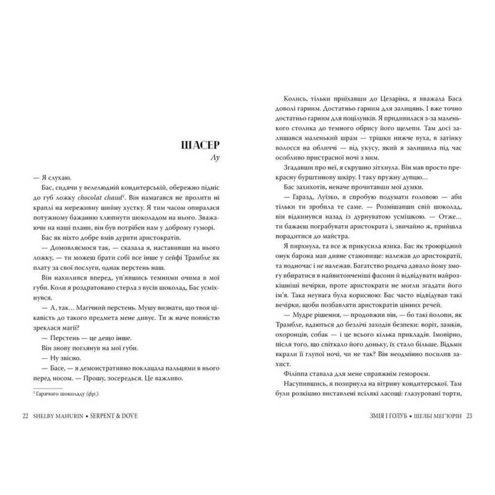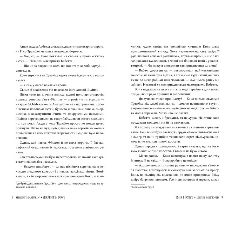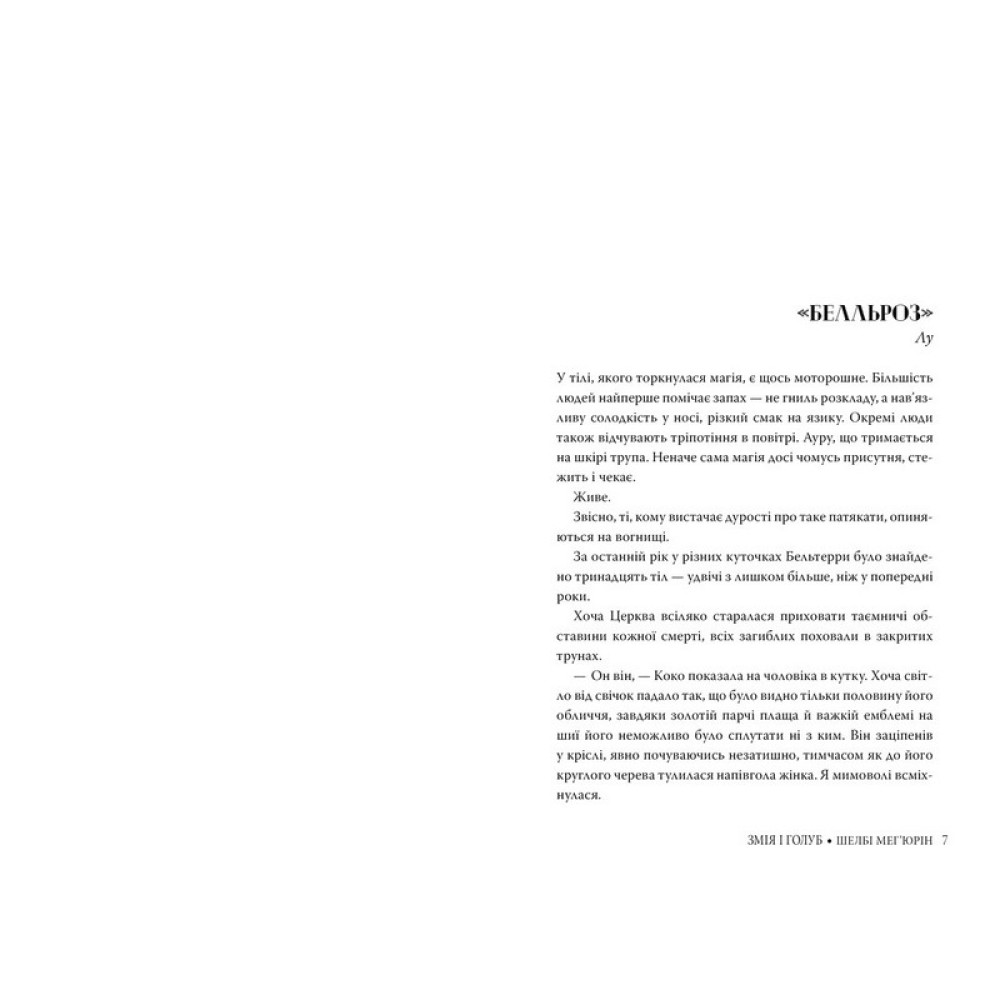 Вiдьма та мисливець на вiдьом, пов’язанi священними шлюбними узами. Така iсторiя могла скiнчитися лиш одним: вогнищем i сiрником.Блискучий дебют, у якому є все, що я люблю: яскрава, вповні реалізована головна героїня, вигадлива й смертельно небезпечна система магії, а також палка історія кохання, якою я зачитувалася допізна. «Змія і голуб» — не книга, а справжнісінький діамант.Сара Дж. Маас, авторка серії «Двір шипів і троянд», бестселера №1 за версією New York Times