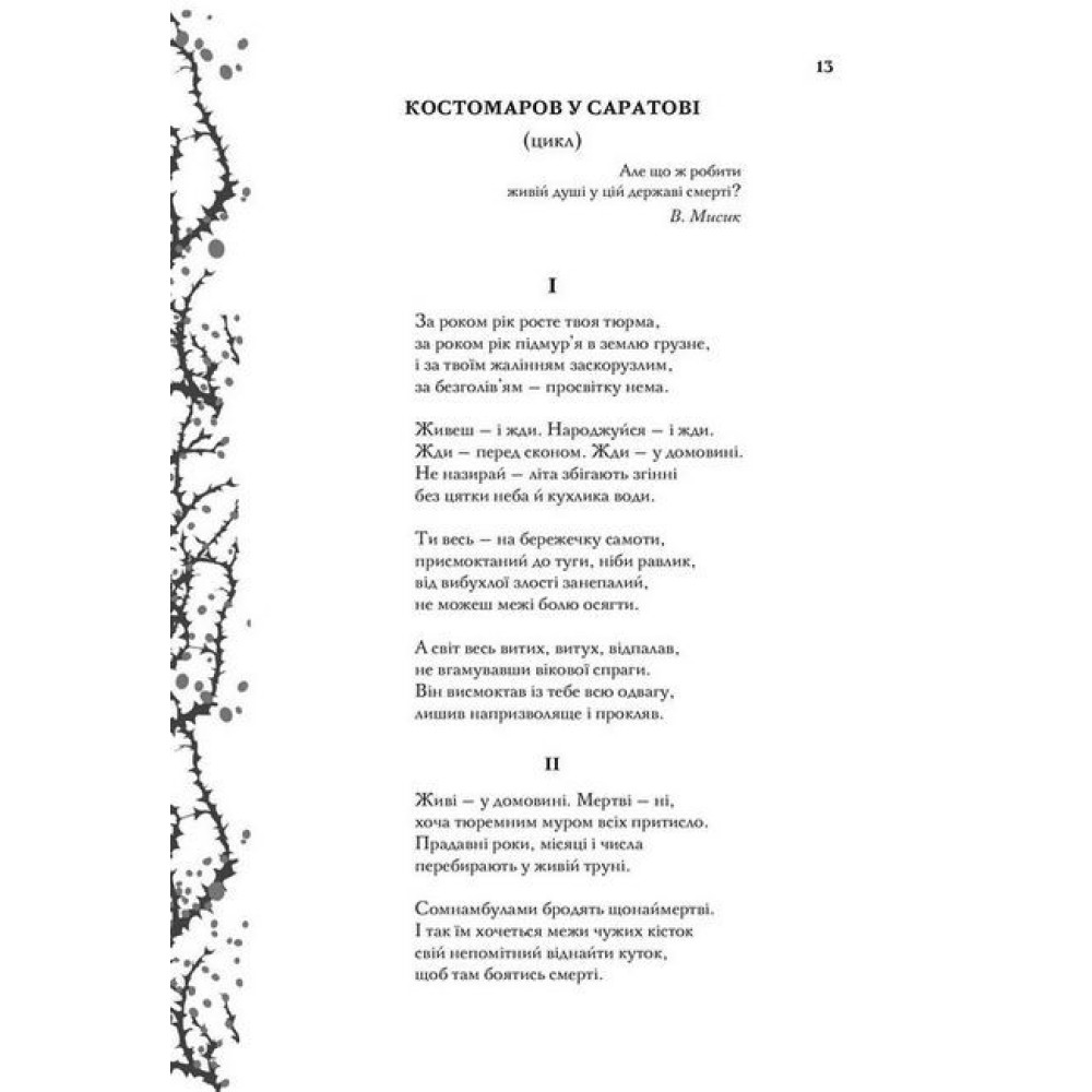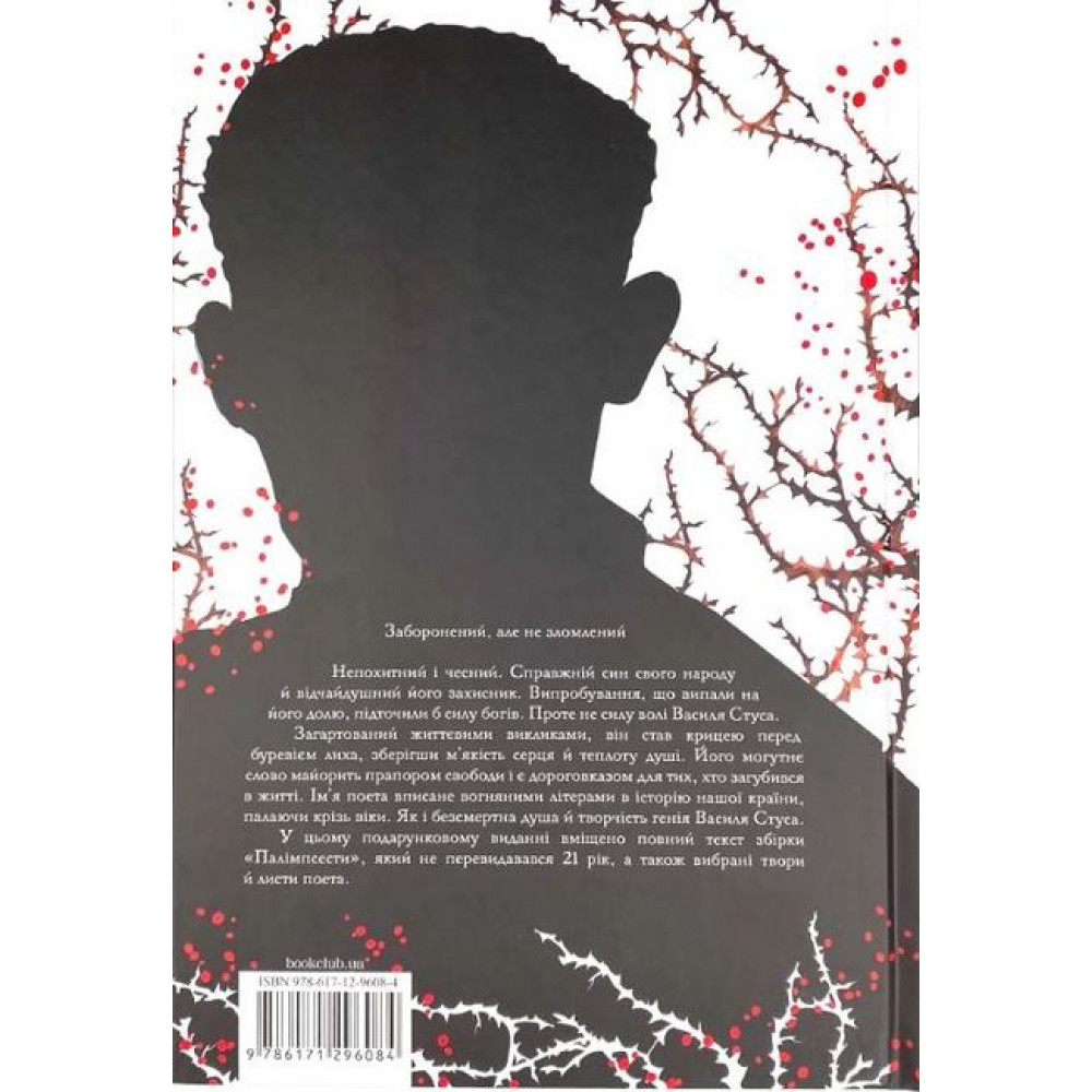 Заборонений, проте не зломленийНепохитний та незламний. Оспіваний та заборонений. Справжній син свого народу й відчайдушний його захисник. Людина, що пережила стільки випробувань, які підточили б силу богів. Але не силу волі Василя Стуса. Відшліфований життєвими викликами, він став крицею перед буревієм лиха, проте зберіг м’якість серця та теплоту душі. Його могутнє слово крізь роки майорить прапором свободи і є маяком для тих, хто загубився на дорогах життя. У цьому подарунковому виданні вміщено повний текст «Палімпсестів», який не перевидавався 21 рік. До книги ввійшли вибрані поезії та твори поета, ім’я якого не потьмяніє з роками. Бо писане воно вогняними літерами і палатиме крізь віки. Як і безсмертна душа та слово генія Василя Стуса.