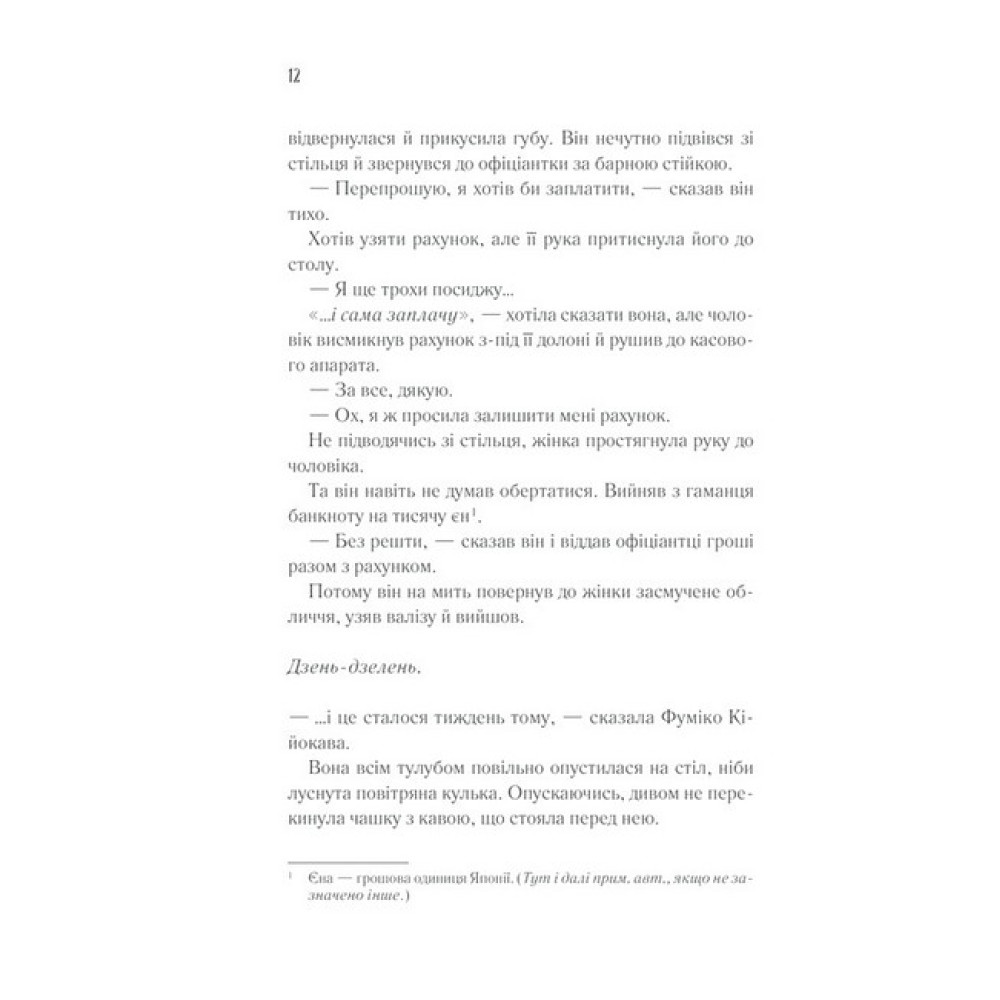 Продано 800 000 екземплярівЕкранізованоДля фанатів «Як зупинити час» та «Дружина мандрівника у часі»Історія, що розчулить до сліз У цій невеличкій кав’ярні вже понад століття подають найсмачнішу каву. Тут можна посидіти за філіжанкою цього гірко-солодкого напою, відволіктися від буденних проблем і... вирушити в подорож у часі. Щоб зустрітися з коханим, з яким вас колись розлучили кілометри. Чи отримати лист від чоловіка, який забув про вас через хворобу. Знову хоча б на мить побачитися із сестрою, яка загинула в автокатастрофі. У кожного свої причини побувати в минулому. Проте є умова: встигнути повернутися в майбутнє, доки кава не охолоне... Про автора: Тосікадзу Кавагуті — сучасний японський письменник, який зачаровує своїм словом та нестандартними сюжетами. Деякі з його творів (зокрема роман «Доки кава не охолоне») були успішно екранізовані.