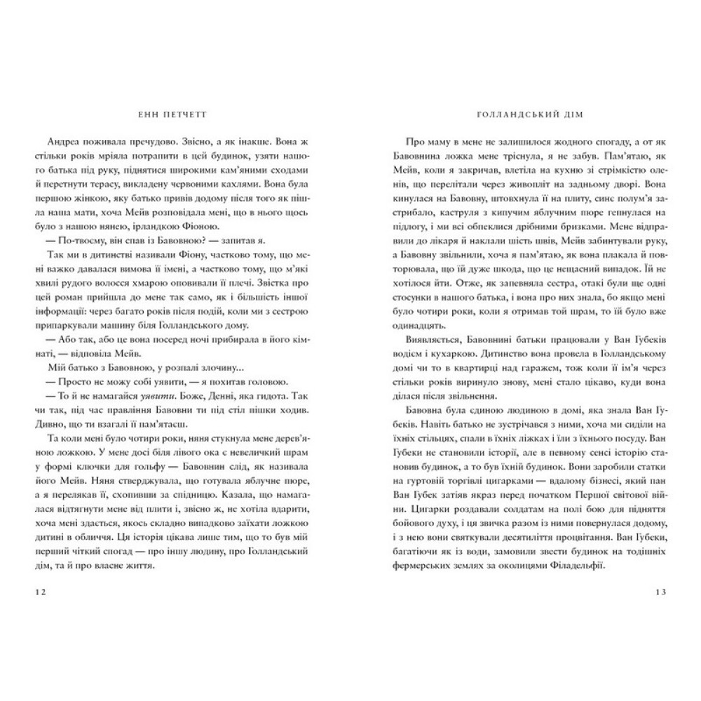 Увага! Продукція сексуального характеру або інша продукція з віковим обмеженням. Продаж неповнолітнім заборонено. Продаж відповідно до вікового обмеження.Чи можливо побачити минуле таким, яким воно було насправді? Кінець Другої світової війни. Сиріл Конрой розбудовує справжню імперію нерухомості, яка виводить його родину з бідності до неабияких статків. І перше, що він робить, розбагатівши — купує Голландський дім, розкішний маєток у філадельфійському передмісті. Однак те, що мало стати сюрпризом для дружини й початком нового, ліпшого життя, натомість запускає зворотний відлік до цілковитого занепаду їхньої родини. Літописцем цієї драми стає син Сиріла, Денні. Їх із сестрою, кмітливою й гострою на язик Мейв, виганяє з дому мачуха. Двоє підлітків, які виросли в просторому домі з прислугою, опиняються в злиднях і швидко усвідомлюють, що можуть покладатися лише одне на одного. Цей нерозривний зв’язок зберігає їм життя… і руйнує їхнє майбутнє. «Голландський дім» — це історія втраченого раю, яка ставить непрості запитання про любов, самопожертву і прощення, про те, ким ми є і ким хочемо себе бачити. Ви можете смакувати цей роман поволі чи прочитати його якнайшвидше, щоб дізнатись, чим же все закінчилося, але Денні і Мейв однаково залишаться з вами надовго.«Голландський дім» став фіналістом Пулітцерівської премії 2020 року, увійшов у довгий список Жіночої літературної премії 2020 року та номінувався як найкраща історична проза Goodreads Choice Award 2019 року.Цей роман — справжня знахідка для всіх поціновувачів родинних саг!Портрет Мейв для обкладинки «Голландського дому» на замовлення Енн Петчетт створив американський художник Ноа Сатерстром — їх свого часу познайомила Донна Тартт. Енн Петчетт показала Ноа дві сторінки, на яких описано картину, і за цим описом він за три дні створив портрет, оригінал якого і досі висить вдома в письменниці.За словами авторки, її страшенно дратує, що жінки на обкладинках книжок майже ніколи не дивляться в очі — їхні погляди переважно відведені вбік, обличчя затінені капелюхами або частково обрізані. Це одна з причин, чому їй так полюбився портрет Мейв.