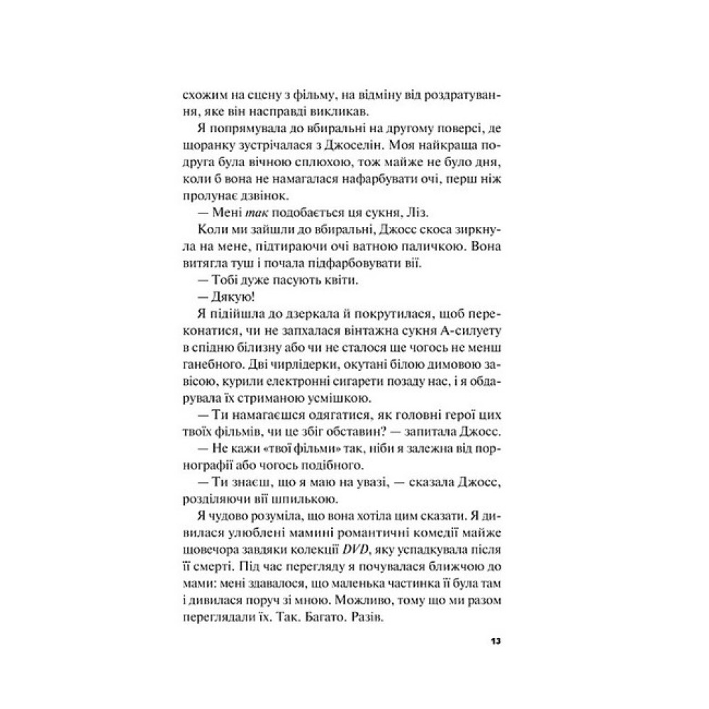 Ліз Баксбаум завжди знала, що Вес Беннет — жахливий сусід. У нього наче шило в одному місці ще з дитинства: то підкладе жабу в її «Будиночок мрії Барбі», то відітне голову садовому гномові й залишить у саморобній дівчачій бібліотеці. Минуло вже десять років після обезголовлення гнома і, здавалося б, усе мало змінитись… Але тепер у сусідів нова жорстока війна: за паркувальне місце на їхній вулиці. Це останній рік шкільного навчання для Ліз — час, сповнений важливих подій, які вартують великого екрана. Адже дівчина просто поглинута фантазіями про те, що її життя складеться так, як у романтичних стрічках. Зненацька виявляється, що їй потрібна Весова допомога. Річ у тім, що Ліз дуже давно закохана в Майкла — хлопця її мрії, який щойно повернувся до міста і, хоч як це прикро, заприятелював із Весом. Якщо Ліз хоче, щоб Майкл нарешті звернув на неї увагу, то нестерпний сусід Вес — її шанс. Але потрібне диво, щоб дівчині вдалося вмовити Веса піти на дивакувату угоду, метою якої стане влаштування для Ліз чарівного, майже кіношного романтичного моменту, в якому вона буде разом із Майклом на їхньому випускному… А може, Вес насправді вже не той огидний капосник, а дорослий і надійний хлопець, з яким можна мати справу? «Краще, ніж у фільмах» — іронічний, легкий та веселий Young Adult ромком американської авторки Лінн Пейнтер. Підліткова ворожнеча сусідів Ліз і Веса — вже легенда цілого кварталу. Та й, дійсно, що може бути спільного у хулігана із шилом деінде і мрійниці, яка хворіє на бажання зробити своє життя таким, як у романтичних фільмах… Або… Краще, ніж у фільмах? І щоб її романтичним героєм став саме Майкл, який, як на зло — друг Веса. Заради свого казкового моменту, Ліз би пішла на угоду хоч з самим чортом. Втім, з її погляду, звернутися до Веса — це одне й те саме. Це роман про дружбу й ворожнечу, про максималізм і прозріння, про дурні халепи й несподівані життєві ситуації. Про упередженість і помилки у міркуваннях щодо інших людей, заплутану авантюру в межах одного містечка, та зародження справжнього кохання, яке дорослішає разом з героями. Добра любовна історія, яка залишає по собі відчуття, що поки ми намагаємося зробити життя кращим, ніж у фільмах, то й самі не помічаємо, як воно й направду стає кращим, най і у зовсім інший спосіб.
