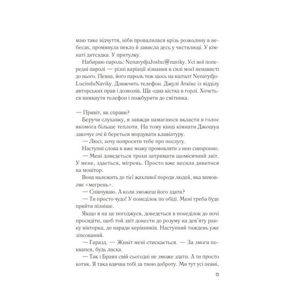 Люсі Гаттон ділить тісний робочий простір з Джошуа Темплменом, бридким типом, якого вона щиро ненавидить. Можливо, тому що він копіює кожен її рух, сидячи за столом навпроти, а може, тому що він посіпака, який обожнює правила й алгоритми. Джошуа теж не в захваті від чарівної Люсі, яка має хронічну потребу в обожнюванні, тому вони ніяк не можуть спрацюватися. Та одного дня їхній офісний конфлікт виходить на новий рівень — тепер вони удвох претендують на посаду виконавчого директора. Якщо Люсі виграє, то стане Джошевою начальницею, а якщо програє, то звільниться. Тож вона стрімголов кидається у бій… Але враз усе летить шкереберть. Спочатку цей мерзотник проникає в її сни, а потім у порожньому ліфті Джошуа Темплмен її цілує… Невже за взаємною ненавистю ховалася закоханість? І чи вдасться Люсі після всього обійняти посаду мрії?