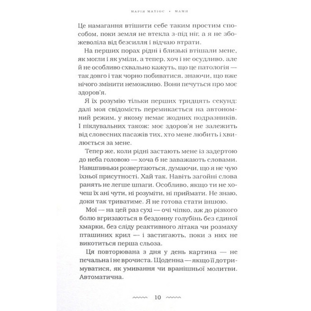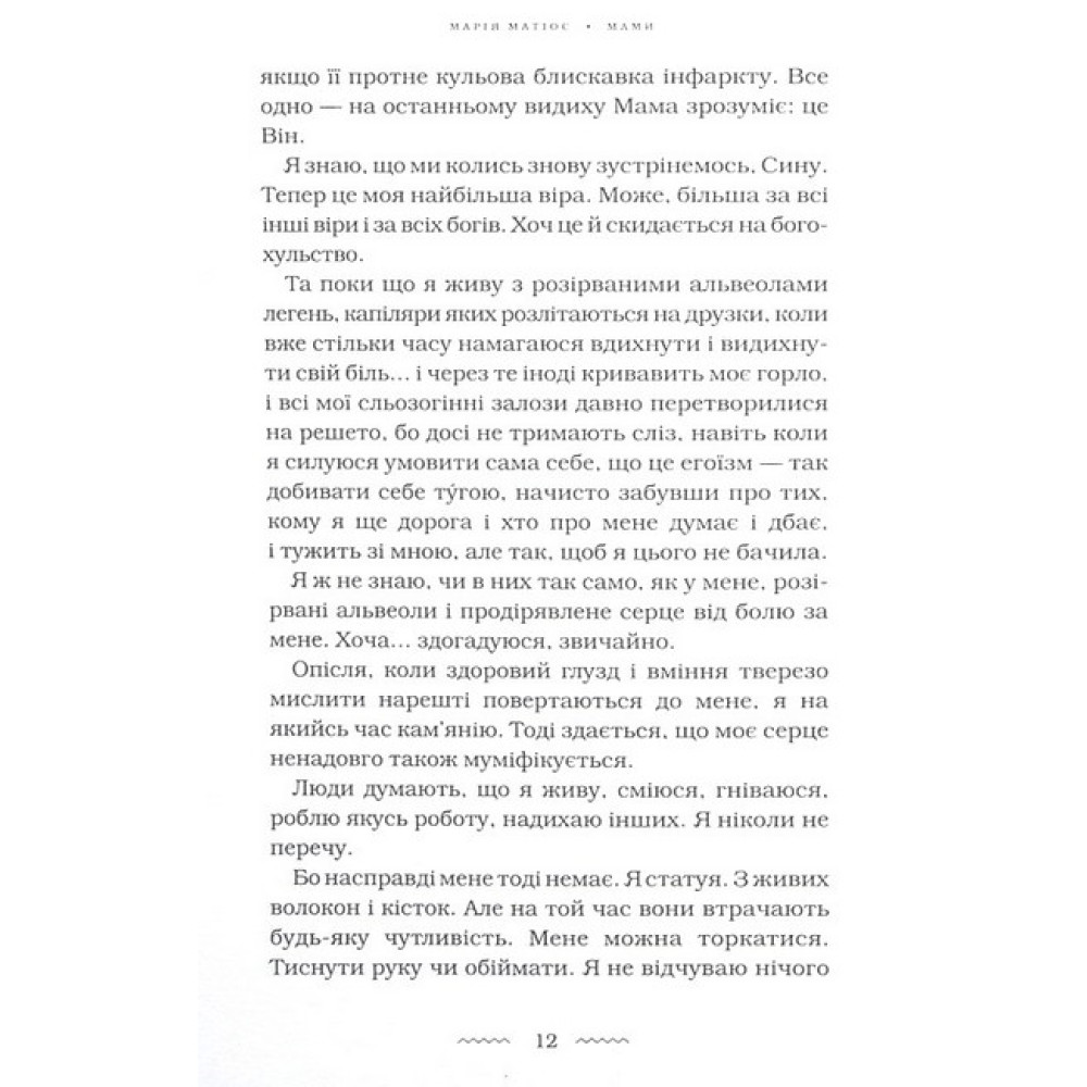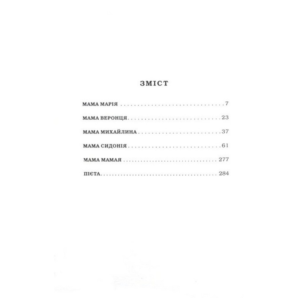 Що лишається матері, коли життя забирає у неї найцінніше — власну дитину, і вона опиняється у прірві відчаю і безсилля? Де вона бере сили не збожеволіти від невимовного болю і вселенської скорботи, які вже навічно оселилися у її серці?У своїй новій книзі Марія Матіос розповідає історії п’яти жінок. Усі вони — різні, у кожної своя доля, але об’єднує їх одне — найстрашніше, що може спіткати маму, — втрата єдиного сина. Кожна переживає горе по-своєму, а разом вони доповнюють одна одну і розкривають усю глибину й розпач трагедії осиротілого материнства.«Мами» — важка, драматична книга. Неможливо не співчувати її героям, як неможливо не звернути увагу й на гострі питання, які порушує відома українська письменниця у своїй найновішій книзі.