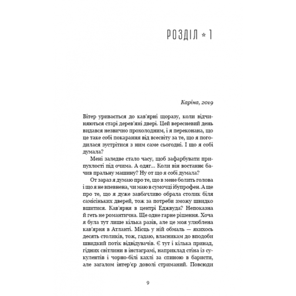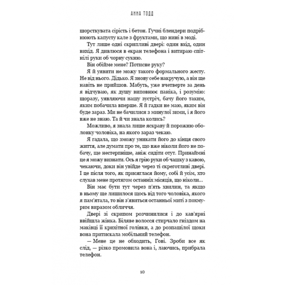 Каріні лише двадцять, а вона вже досягла певного статусу у суспільстві. Дівчина є власницею невеличкого будиночка, щовівторка чемно обідає з татом і його новою дружиною, отримує задоволення від роботи. Але це зовнішній бік її життя, насправді Каріна відчайдушно прагне спокою і усамітнення. Зустріч з мовчазним загадковим Кейлом руйнує її крихкий душевний спокій. І хто сказав, що не можна закохатися раптово і пристрасно? І чому яскраві зорі здаються сумними? Сімейна драма, історія кохання, пошуки сенсу життя — все це на сторінках нового бестселера від Анни Тодд.