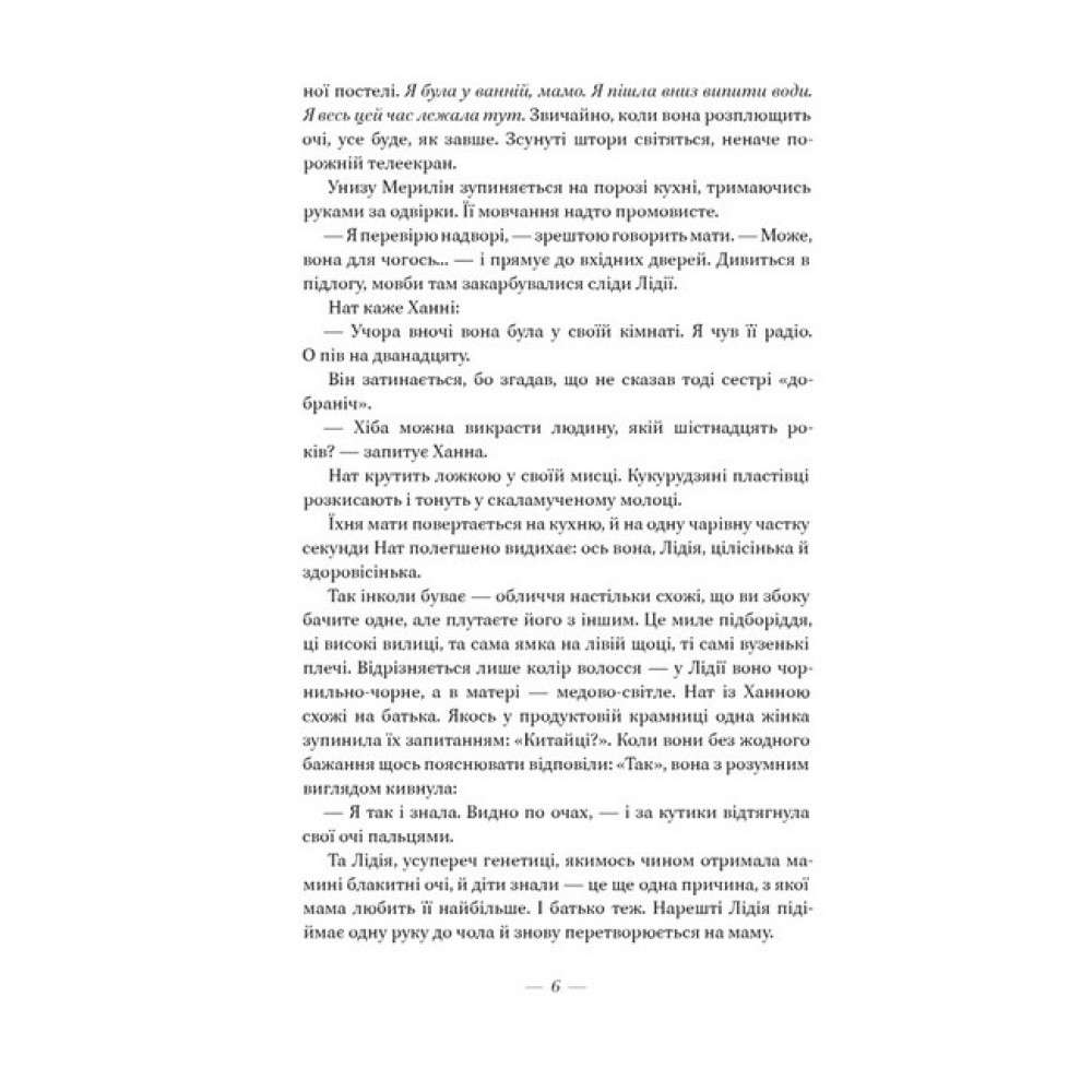 Лідія — центр всесвіту сім’ї Лі. Довкола неї обертаються усі мрії, сподівання, слова і вчинки. Мати наперед визначила її долю: свою блакитнооку дівчинку вона бачить лікаркою, дорослою, упевненою в собі жінкою. Купує їй книжки, допомагає робити домашні завдання, береже, мов коштовний скарб, і навіть не пускає з дому. Батько мовчки потурає дружині. Інші двоє дітей ростуть у тіні виплеканого батьками «сонечка». Та одного дня їхня зірка зникає назавжди. Чорна діра, що утворилася в душах батьків, затягує всіх, хто лишився... Чи наважаться рідні, опинившись на краю прірви, нарешті сказати те, про що мовчали?Роман «Несказане» — один із найгучніших дебютів 2015 року. Молода письменниця приголомшила читачів глибоким, багатошаровим, блискуче написаним, вишуканим романом. «Несказане» — захоплива книга про любов, секрети та брехню, які завжди йдуть поруч. Переклади книжки вийшли у понад двадцяти країнах.Про авторку: Селесте Інґ — американська письменниця, лауреатка Пушткартської премії за найкраще оповідання. «Несказане» — її перший роман, що й приніс авторці світову славу.