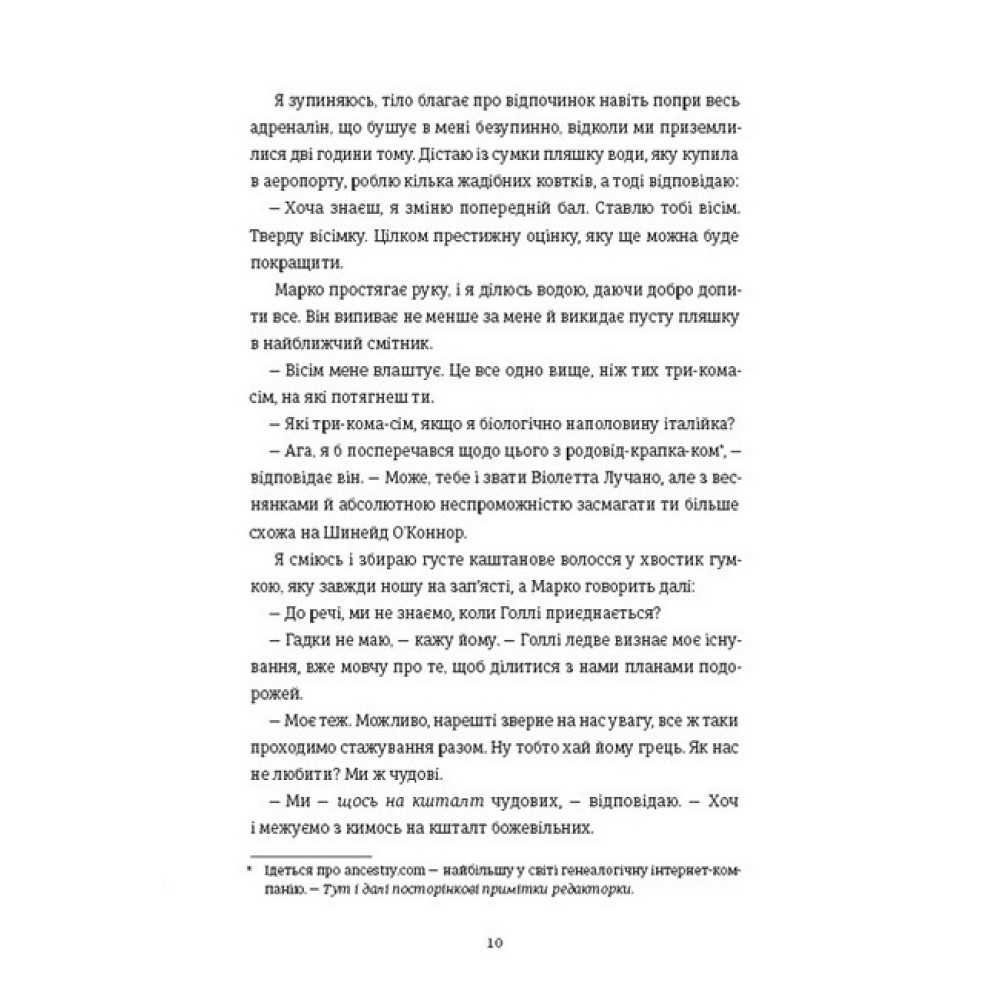 Ідеальний ромком для легкого читання з атмосферою спекотного Риму.Найбільше у світі Віолетта прагне закінчити школу дизайну та працювати в сфері моди, тож бере участь у модному конкурсі, що має змінити все її життя. У перший день свого перебування в Римі, дівчина стикається із саркастичним сином своєї професорки, переливаючи на його ноутбук каву… Їхня ворожнеча (і беззаперечна хімія) зростає, оскільки їм доведеться провести майже все літо разом. З тим, кого Віолетта терпіти не може.Чи пощастить головній героїні виграти головний приз — працевлаштування в найпрестижнішому будинку моди, чи зробить вона складний вибір, коли на кону здійснення найзаповітнішої мрії?