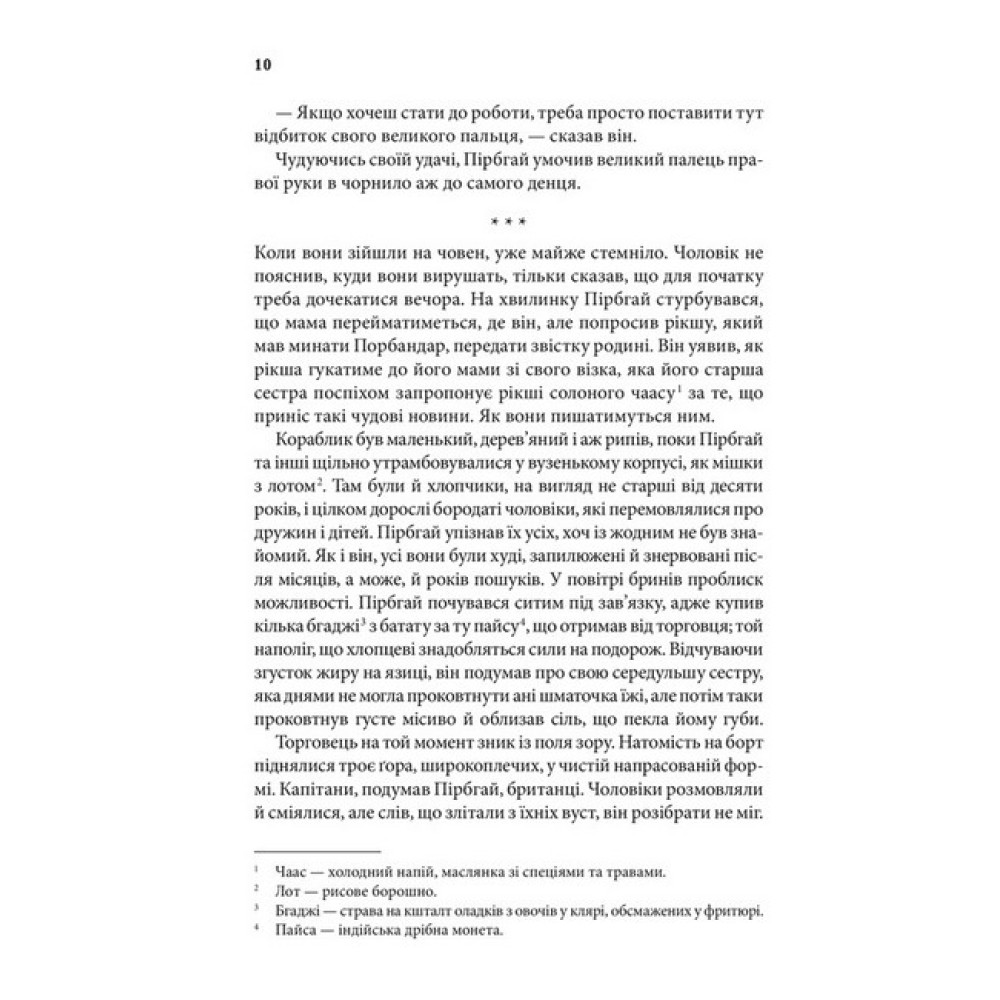 ЧОТИРИ ПОКОЛІННЯ. ТРИ СЕСТРИ. ОДНА РОЗДІЛЕНА НАЦІЯ У 1898 році індійського підлітка Пірбгая забирають з рідного села працювати на Східноафриканській залізниці. Далеко від дому хлопець здійснює жорстокий вчинок. Вуглинки того страшного дня розгоряються у полум’я, яке палахкотітиме протягом чотирьох поколінь на чотирьох континентах усе двадцяте століття. Діти Пірбгая все життя мешкають в Уганді, тут народжуються й дорослішають три його онуки. Але в 1972 році військовий диктатор Іді Амін проголошує, що країна належить тільки етнічним угандійцям. Тож нащадки індійця Піргбая змушені покинути все, що мають, і тікати. Тепер три сестри розкидані по різних континентах. Несподіваний лист змушує кожну з них замислитися, як далеко вона може зайти і кому готова кинути виклик, щоб вибороти собі місце у світі.