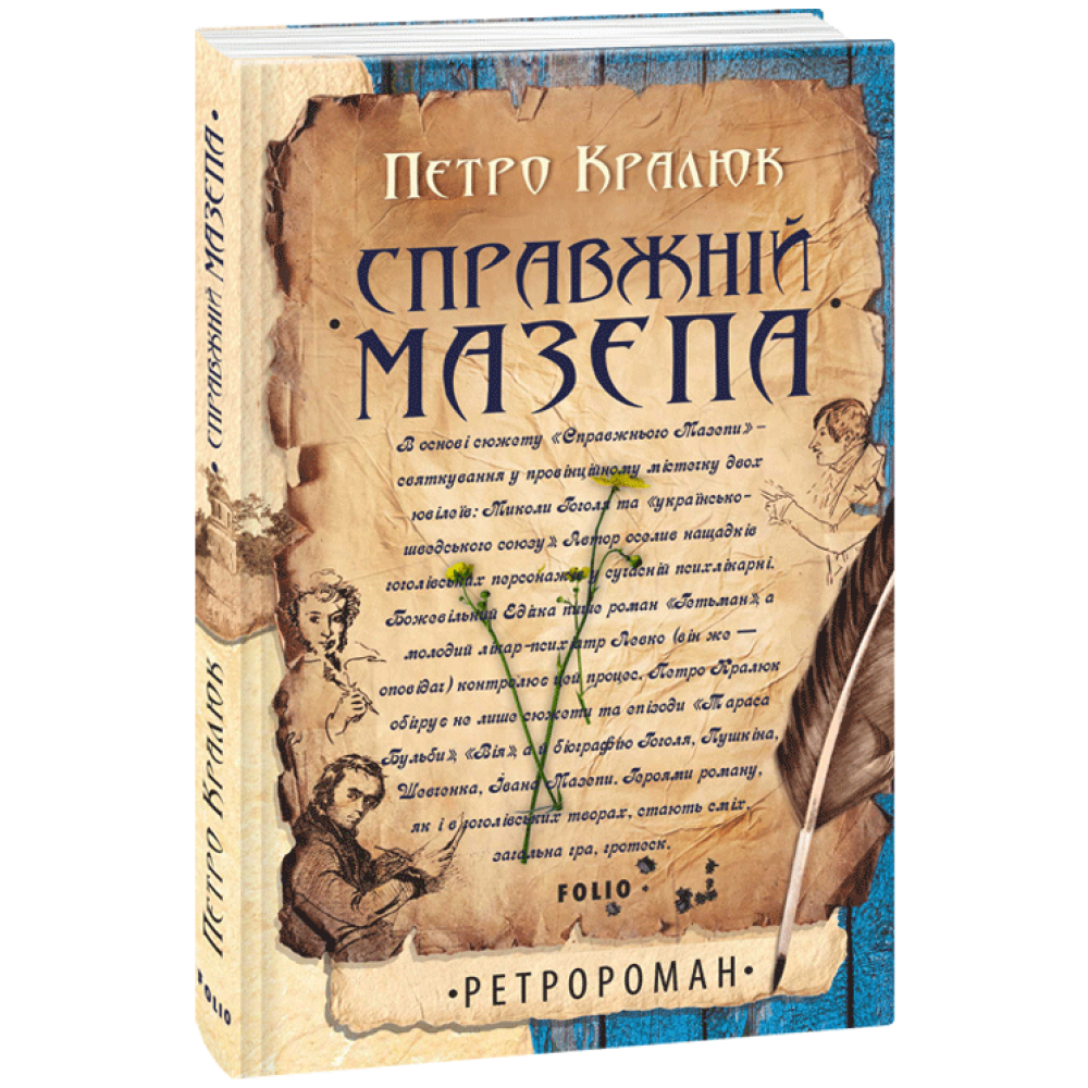 Петро Кралюк (нар. 1958 р.) – доктор філософських наук, професор, перший проректор Національного університету «Острозька академія». Автор понад 150 наукових праць з історії, філософії, релігієзнавства, політології, літературознавства, а також шести історико-інтелектуальних художніх книжок, в яких він подає власні версії історичних подій та біографій видатних людей минулого. У видавництві “Фоліо” вийшли друком книжки “Козацька міфологія України: творці та епігони” та “Богдан Хмельницький: легенда і людина”. В основі сюжету “Справжнього Мазепи” – святкування у провінційному містечку двох ювілеїв: Миколи Гоголя та «українсько-шведського союзу». Автор оселив нащадків гоголівських персонажів у сучасній психлікарні. Божевільний Едічка пише роман «Гетьман», а молодий лікар-психіатр Левко (він же – оповідач) контролює цей процес. Петро Кралюк обігрує не лише сюжети та епізоди «Тараса Бульби», «Вія», а й біографію Гоголя, Пушкіна, Шевченка, Івана Мазепи. Героями роману, як і в гоголівських творах, стають сміх, загальна гра, гротеск.