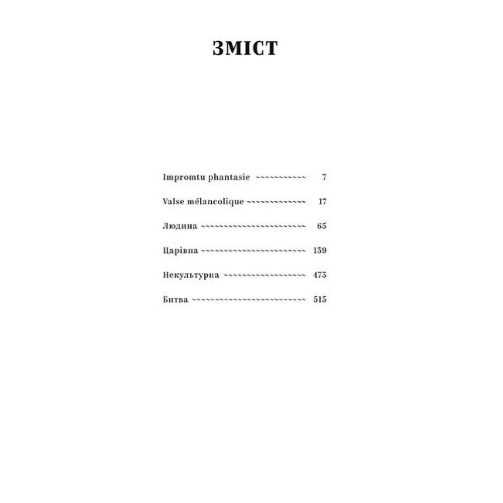 Серія Yaka ШКОЛА від Yakaboo Publishing представляє вибрані твори Ольги Кобилянської. Героїні, що обстоюють непорушні цінності й ідеали, уславлення музики, мистецтва та чудові пейзажі — мабуть, найяскравіші асоціації до творів письменниці-модерністки. До вашої уваги одна з найвідоміших повістей Ольги Кобилянської — «Царівна», що створювалася впродовж 1888–1895 років спочатку німецькою, а згодом українською мовою та порушує актуальну на ті часи тему емансипації жінок. До видання також увійшли «Impromtu phantasie», «Valse melancolique», «Людина», «Некультурна» й «Битва».
