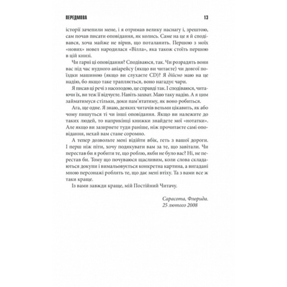 Цілком можливо, що, прочитавши оповідання Великого і Страшного Стівена Кінга, ви почнете рахувати предмети довкола себе, аби почуватися в безпеці, з підозрою поглядати на великі замкнені будинки або нервуватися через телефонні дзвінки. Проте ніщо не зможе вам завадити насолоджуватись майстерністю письменника.