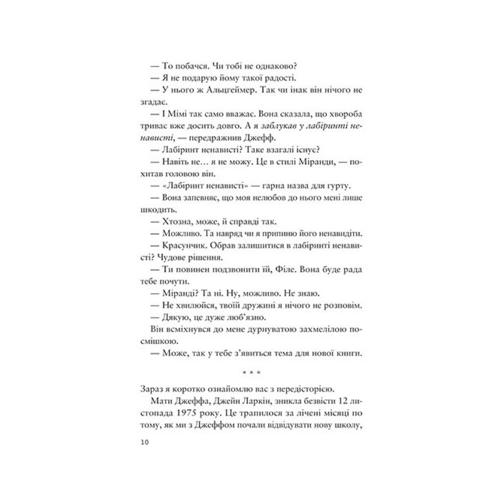 Листопад 1975 року. Маленька дівчинка на ім’я Міранда Ларкін повертається додому зі школи й не знаходить мами. Речі Джейн там, де завжди, навіть гаманець на звичному місці в передпокої. У будинку немає слідів боротьби й ознак вторгнення. Перший і єдиний підозрюваний — чоловік Джейн, адвокат із кримінальних справ Ден Ларкін. Блискучий професіонал, він добре знає, як пошити в дурні поліцію. Доказів, які б пов’язували його зі злочином, немає, тож справа так і залишається нерозкритою, про неї забувають… До тієї миті, коли за вісімнадцять років знаходять останки Джейн Ларкін. Розслідування відновлюється, а Міранді і її братам Алексу й Джеффу потрібно визначитися, на чиєму вони боці й чи вірять у те, що їхній батько (не)винний у вбивстві.