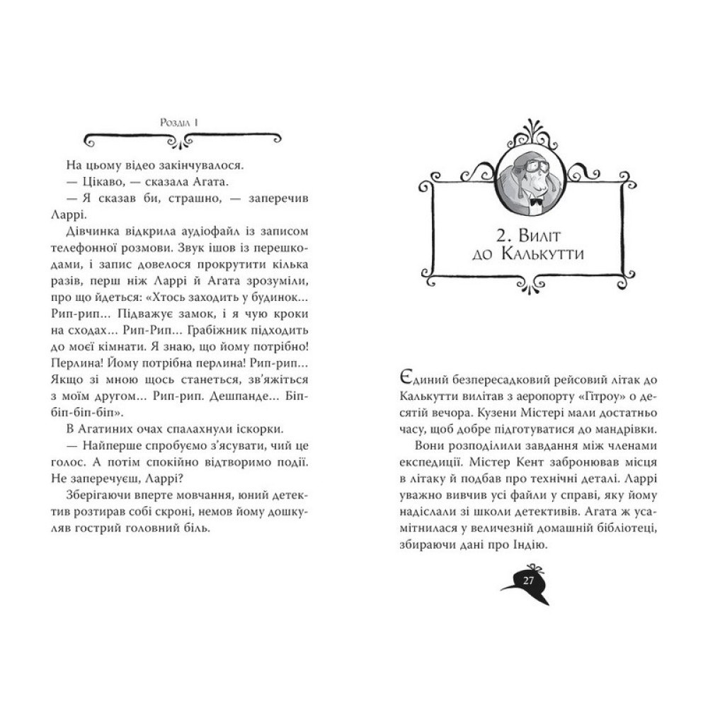 Наділена дивовижним відчуттям і феноменальною пам’яттю, Агата Містері мріє стати письменницею, але це в майбутньому. Поки що ж вона — чудовий детектив! Разом із простакуватим кузеном Ларрі, студентом детективної школи, вона подорожує світом, розгадуючи найзаплутаніші таємниці. А допомагають їм відданий мажордом, капосний сибірський кіт і сила-силенна дивакуватих родичів.Книга 2. Бенгальська перлина.З храму богині Калі в індійському поселенні Чотока викрадено легендарну Бенгальську перлину, а доглядач храму зник. Знайти унікальну реліквію й розкрити таємний злочин — нове завдання для Ларрі Містері. Звісно, у подорож разом із ним вирушає і його сестра Агата!