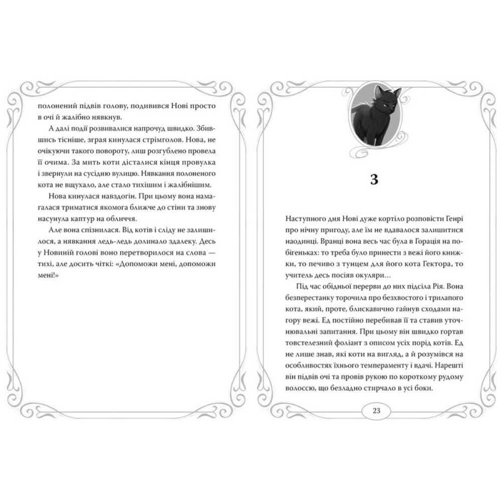 Тільки ті, хто наділені рідкісним хистом фелідікса, здатні розуміти котячу мову. І хист цей не для розваг чи жартів, це величезна відповідальність. Адже у хвилини страшної небезпеки навіть Опівнічним Котам потрібна допомога!«Дозвольте відрекомендуватися. Мене звати Едісон». З цих слів чорного як смола кота з бірюзовими очима для Нови й Генрі почалася карколомна пригода.Жадібна до влади сіамська кішка Пенелопа викрала котячу королеву Англії Квінн Двадцять Першу і тримає її в неволі. У самозванки та її посіпак залишилася ще одна, остання справа: прибрати зі шляху всіх Опівнічних Котів — охоронців справжньої королеви, — і Пенелопа здобуде корону і владу!Щоб звільнити королеву Квінн, Нова й Генрі мусять вирушити в лондонське підземелля і хай там що, а відшукати шлях до Цератону — найнеприступнішої в’язниці у всій Англії…