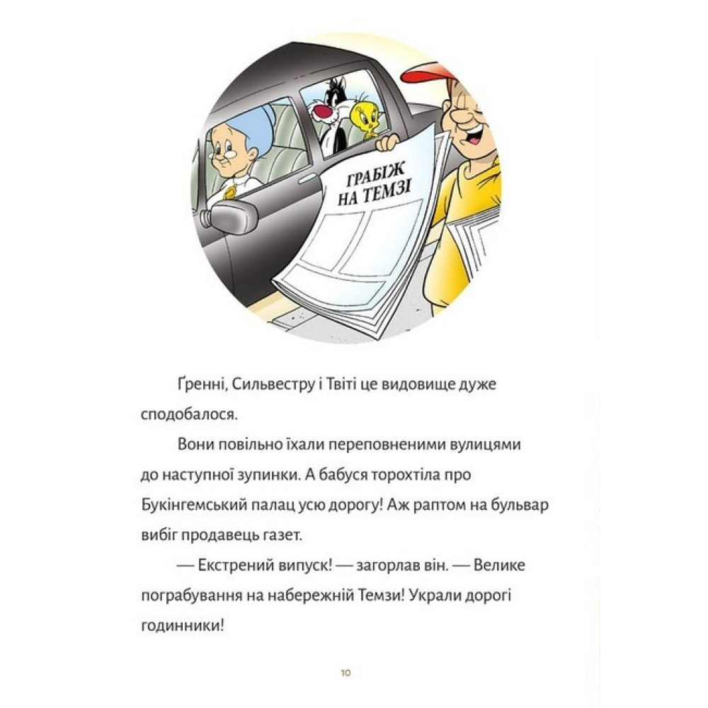 За мотивами мультфільмів Looney Tunes! Твіті опиняється в Лондоні. Тутешній екскурсовод показує їм із Ґренні та Сильвестром найцікавіші куточки міста. Та от збіг — усі місця, які вони відвідують, потім виявляються пограбованими! Добре, що гаркавий канарок Твіті — чудовий детектив! Він уже готує план, як викрити злочинця. Чому варто придбати:Всесвітньо відомі персонажі заговорили українською на сторінках цієї книжки!Комфортний текст для перших самостійних кроків у читанні.Малий милий птах показує, наскільки цінними є розум та спостережливість.Разом із Твіті подорожуй світом і відкривай нове.Детективний сюжет захоплює, а розв’язка дивує!