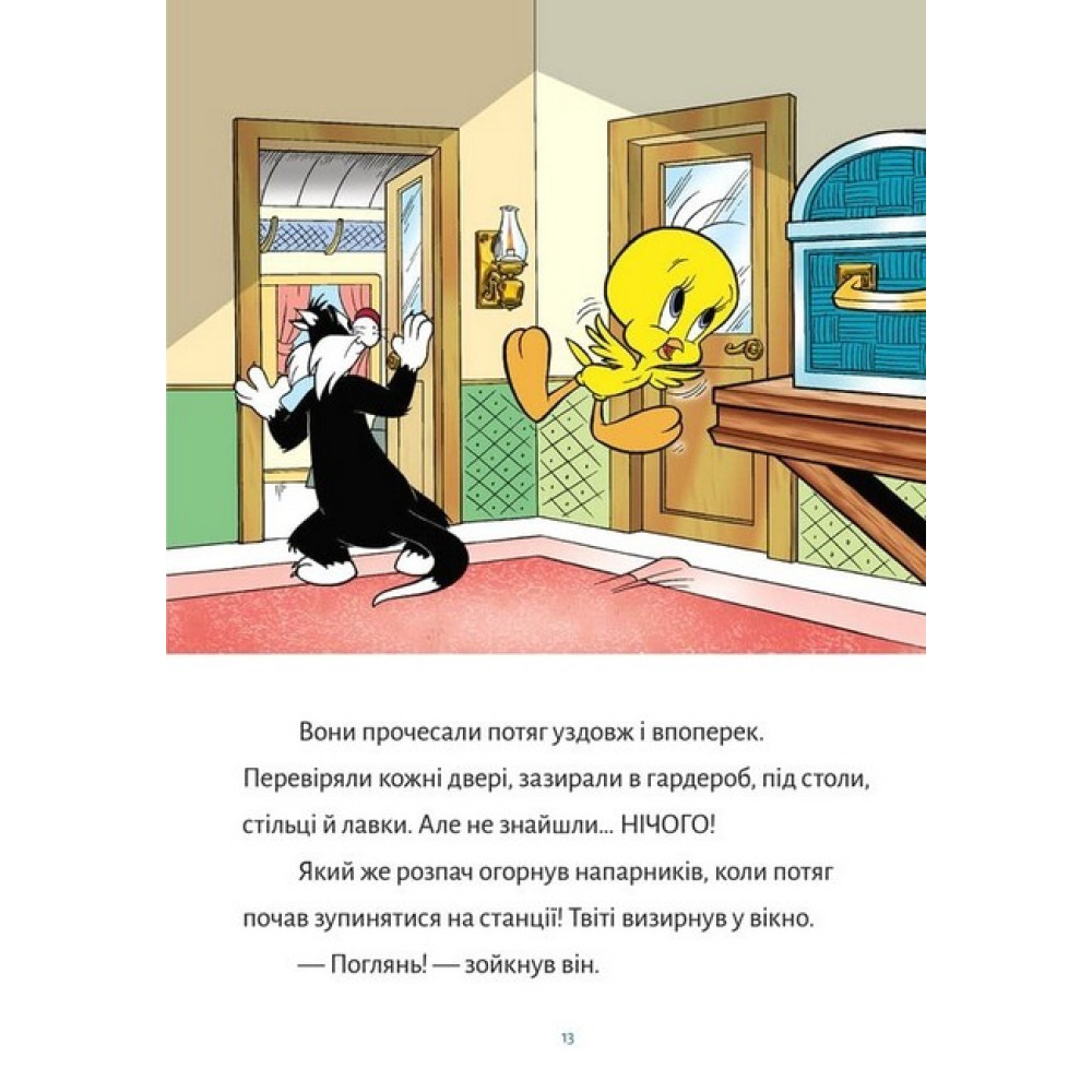 За мотивами мультфільмів Looney Tunes! Ґренні вирушає на зустріч із сестрою, яку не бачила ще з юних літ. Твіті та Сильвестр, як завжди, поряд! Але раптом Ґренні кудись зникає! І лишає друзям лише тривожне послання на вікні купе. Добре, що гаркавий канарок Твіті — чудовий детектив. Він обов’язково розплутає цю загадку! Чому варто придбати:Всесвітньо відомі персонажі заговорили українською на сторінках цієї книжки!Комфортний текст для перших самостійних кроків у читанні.Малий милий птах показує, наскільки цінними є розум та спостережливість.Разом із Твіті подорожуй світом і відкривай нове.Детективний сюжет захоплює, а розв’язка дивує!