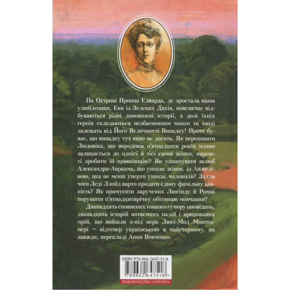 На Острові Принца Едварда, де зростала наша улюблениця, Енн із Зелених Дахів, повсякчас відбуваються різні дивовижні історії, а долі їхніх героїв складаються незбагненним чином й іноді залежать від Його Величності Випадку! Проте буває, що випадку тут явно не досить. І тоді в ситуацію доводиться втрутитися нашій давній знайомій - Енні Ширлі. Як переконати Людовіка, що впродовж п’ятнадцяти років мляво залицяється до однієї й тієї самої жінки, нарешті зробити їй пропозицію? Як влаштувати шлюб Александра-Авраама, що уникає жінок, із Анжеліною, яка не менш уперто уникає чоловіків? Задля чого Леді Ллойд варто продати єдину фамільну цінність? Як примусити заручених Люсінду й Ромні порушити п’ятнадцятирічну обітницю мовчання?