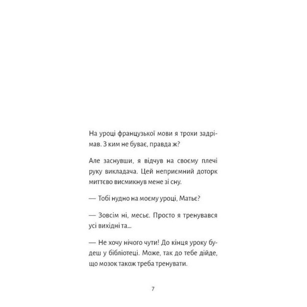 Матьє — звичайний школяр, який опиняється у шкільній бібліотеці. Але це не просте місце, а портал у світ таємниць і небезпек, прихованих у найстарішій частині школи. Його гід у цьому загадковому просторі — дивний бібліотекар Віатер Леклерк. Старі книги, запилюжений підвал і моторошні експонати перетворюються на пастку, з якої неможливо вибратися. Кожна сторінка захоплює читача у вир страху та загадок, а кожен поворот сюжету відкриває нові деталі, які змушують задуматися: наскільки небезпечними можуть бути секрети минулого?Ця історія — гостросюжетний трилер, що поєднує елементи психологічного жаху й детективу, піднімаючи питання довіри, людської витривалості та сили духу перед лицем невідомого.
