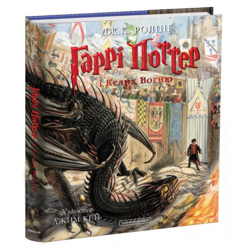 Щедро ілюстрований «Келих вогню» буде товщим на 216 сторінок за «Філософського каменя», на 192 за «Таємну кімнату» і на 128 за «В’язня Азкабану». Текст подано повністю, без скорочень — як і в попередніх трьох кольорових виданнях.Неповторні мистецькі чари Джима Кея — кавалера медалі Кейт Ґрінвей — допомагають йому вичаклувати захопливі пейзажі й образи незабутніх персонажів — Дикозора Муді, Віктора Крума, Ріти Скітер та інших — творячи тло для битви між Бобатоном, Дурмстренґом і Гоґвортсом за здобуття Тричаклунського кубка, яка розгортається на сторінках цього розкішного ілюстрованого видання четвертої книжки з улюбленої серії Дж.К. Ролінґ. Відколи під час Кубка світу з квідичу в небі спалахнула Чорна мітка, Гаррі Поттера підстерігає небезпека. Обраний Келихом Вогню представляти Гоґвортс на легендарному Тричаклунському турнірі, Гаррі постає перед такими випробуваннями власної відваги і чаклунської майстерності, які могли б виявитися не під силу навіть найвидатнішим чаклунам — першим таким випробуванням став двобій з лютою угорською рогохвісткою. Але для Гаррі цей турнір став лише прелюдією до значно зловісніших подій. В імлистому Малому Генґелтоні, де містяться могили предків Тома Редла, відроджується найтемніша магія..._x000D_ _x000D_ Автор та илюстрації: Дж.Ролінг, худ.Дж.Кей