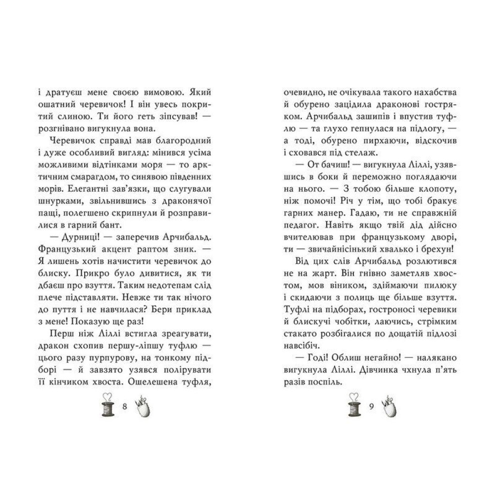 Черевики, що здійснюють бажання! У чарівній чоботарні тобі пошиють ексклюзивне взуття, яке допомагає віднайти в собі хоробрість і наблизитись до омріяного! Якщо ти справді потребуєш допомоги Ліллі, то ноги самі приведуть тебе до дверей таємної майстерні... Флорентіна хоче знайти своє місце в новій школі: потрапити до футбольної команди, потоваришувати з однокласниками... Однак це виявляється не так легко… На щастя, на допомогу дівчинці приходить загадкова Ліллі, дракон мосьє Арчибальд, балакуча черепаха Ву і швець-чарівник дядечко Клеменс. І все було б добре, якби біля будинку Ліллі не з’явилися шпигуни. Невже новим друзям Флорентіни загрожує небезпека?