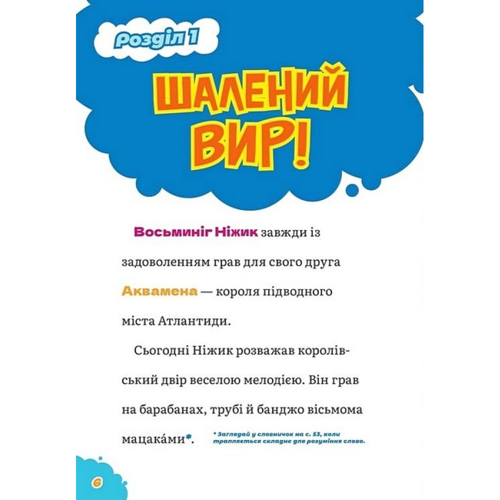 У супергероїв теж є домашні улюбленці — суперулюбленці! У цій пригоді величезні лихі скати ІМЛА та ЧХУН щось задумали! Вони створили гігантський вир, щоби знищити Атлантиду. Якщо Акваменовим улюбленцям — НІЖИКОВІ, ШТОРМУ й АВУ — не вдасться зупинити цих морських лиходіїв, підводне місто зникне назавжди... Гайда рятувати Атлантиду разом із ними! Чому варто придбати:Відкрийте нових героїв всесвіту DC!Яскраве й кумедне оформлення від видатного дитячого ілюстратора.Книжка доводить, що супергероями бувають не лише ті, хто в усіх на виду, — придивляйтеся пильніше до їхньої команди!Історія, яка показує, що доброзичливість здатна творити дива.Про важливість взаємодопомоги й командної роботи.Книжка збагачує словниковий запас і має бонус із добіркою жартів!