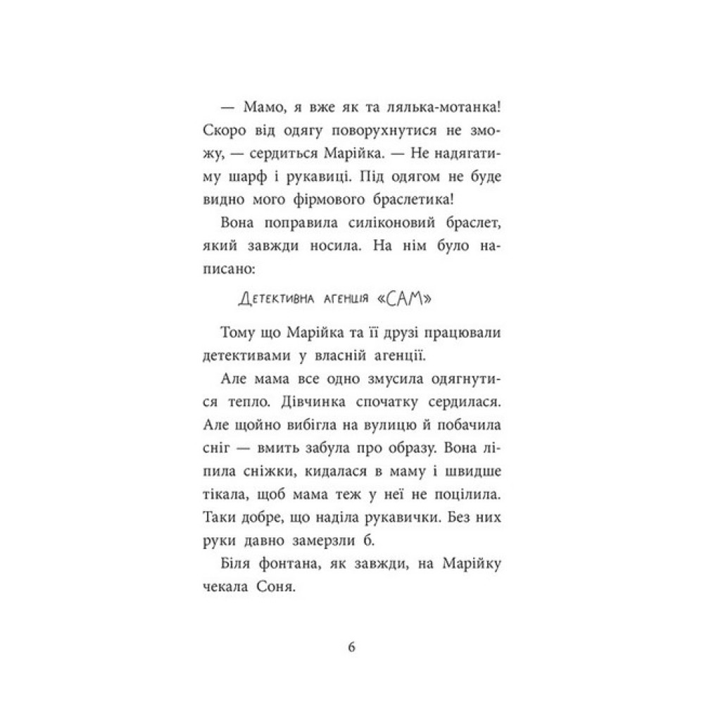 Продовження детективної серії "Детективна агенція «САМ» ". Життя бентежне: хай куди кинь оком, неодмінно наштовхнешся на загадку. І детективи Соня, Андрій, Ілля і Марійка знають це напевно, тож без роботи не залишаться. Хто й навіщо підсунув у шафу стухле яйце? Чи реально розкрити справу, якщо підозрюваними є геть усі містяни? Як дізнатися, хто доєднався до онлайн-уроків і бешкетує в чаті? Детективна агенція «САМ» вкотре доводить, що вона — найкраща у світі. Долучайся до слідства!Пригоди детективів з агенції «САМ» тривають! Хто сказав, що вчитися у школі нудно? Аж ніяк, і герої це доводять у кожній історії. Таємниці, гумор, справжня дружба — те, без чого жити геть не цікаво. Чудова книжка для тих, хто полюбляє розплутувати загадки.Авторка: Ольга Куждіна — дитяча письменниця, волонтерка, мама чотирьох дітей. Рідне місто – Кривий Ріг. Лауреатка Закарпатської обласної премії імені Ф.ПОТУШНЯКА у галузі літератури у номінації «Література для дітей» за книжку «Детективна агенція "САМ" в Ужгороді» У 2023 році книжка "Детективна агенція «САМ» в Ужгороді" перемогла в номінації «Художня проза для молодшого шкільного віку» (лабораторія дитячого читання BaraBooka). Переможниця (у співавторстві з сином Віталіком) літературного конкурсу від «КМ Букс 2019» за рукопис «Лампусики, або Яскраві пригоди Русика і Люксика», володарка диплому 3-го ступеня конкурсу «Дитяча КороНація 2021» за рукопис «Супергерої з 1-Б».
