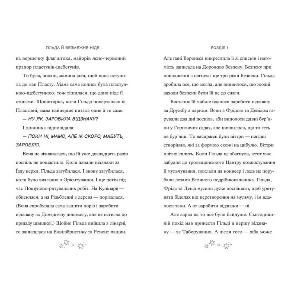Автор | Люк Пірсон, Стівен Дейвіс Серія Гільда Рік 2023 Мова Українська Ілюстрації Чорно-білі Жанр Пригоди, Дитяча фантастика 243? 270 ? КупитиВсе про “Гільда і безмежне Ніде” Від видавця Нещодавно посвячена в пластуни-щебетуни Гільда готова досліджувати дику природу та, можливо, навіть знайти друзів. Але за прикрим збігом обставин, поблизу Тролещини бродить темна, грізна почвара, тож мамі нічого не лишається, окрім як повернути Гільду додому в безпечне місце. Попри це, карколомні пригоди, здається, самі знаходять нашу синьокосу героїню, куди б вона не пішла. А ще ми, схоже, вже за крок від відповіді, куди повсякчас дівається друга шкарпетка чи не в кожному домі Тролещини?..Чому варто придбати:Читач дізнається, які небезпеки чатують на улюблену героїню у мегапопулярній серії коміксів.Пригодницькі історії про Гільду викликають у дітей бажання зазирати у книжки щодня, а з цікавості непомітно формується звичка.Пригоди Гільди мають крутецьку мультиплікаційну адаптацію від Netflix. Рецензії 0 Всі характеристики ВидавництвоARTBOOKS |