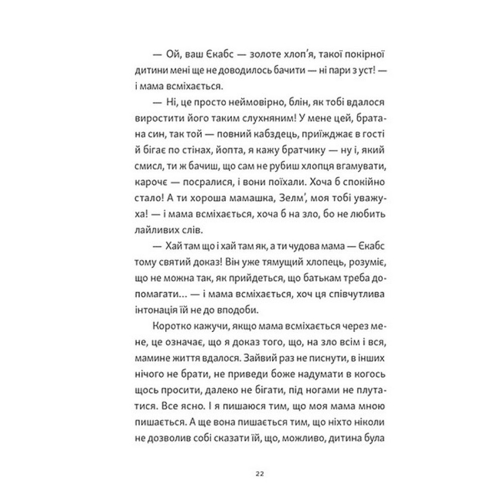 «Хлопчик, який бачив у темряві» — повість латвійської письменниці Раси Буґавічуте-Пеце, яка занурює в атмосферу дитинства 90-х. Єкабс — хлопчик, що народився в незвичайній сім’ї. Проте він хоче бути таким, як усі, — їздити околицями на велосипеді, грати на приставці, піклуватися про котеня, носити класну куртку, купатися в озері й слати Ліене сповнені любові есемески. Батьки Єкабса — незрячі, тож він стикається з «інакшістю» в різних її проявах та змушений подорослішати раніше за однолітків. Зворушлива історія для підлітків та дорослих про те, як можна бачити серцем.
