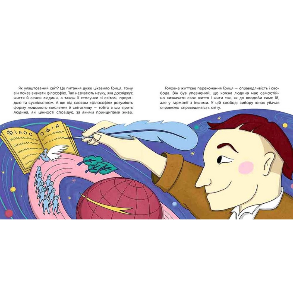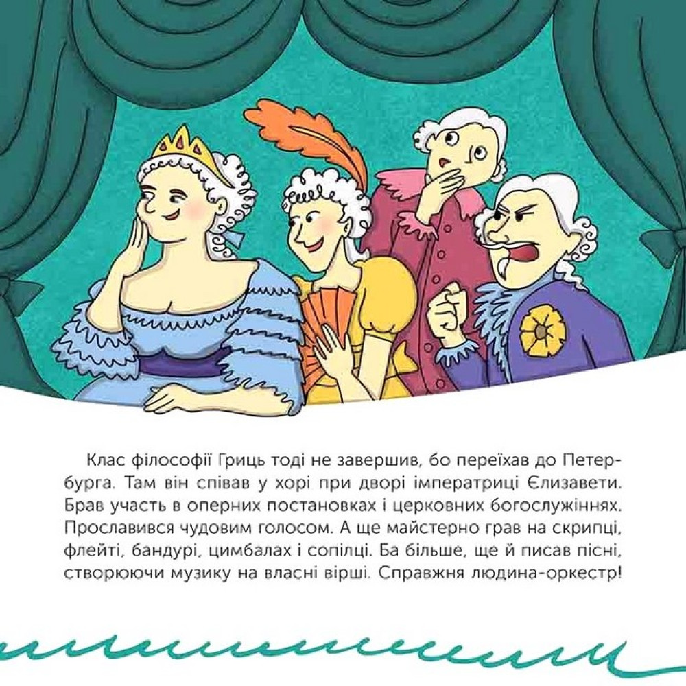 Філософ, поет, педагог і перекладач — це все про Григорія Сковороду. Народившись у звичайній селянській родині, він самотужки опанував майже десять іноземних мов. Це дало йому змогу читати зарубіжну літературу в оригіналі та спілкуватися з цікавими людьми з різних країн. Він був вільний духом і тілом, ніколи не сидів на одному місці, багато подорожував світом. Історія його життя захоплює і надихає. І ця книжка саме про це!Ця книжка, яку написала Марія Сердюк і проілюструвала Катерина Гордієнко, містить безліч цікавих фактів з життя видатного українця. Викладений доступною мовою біографічний матеріал та яскраве оформлення зацікавлять малечу.