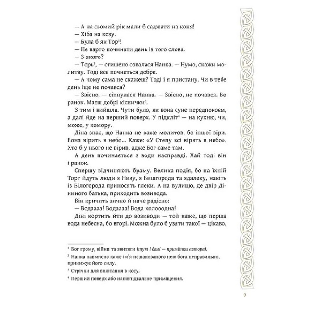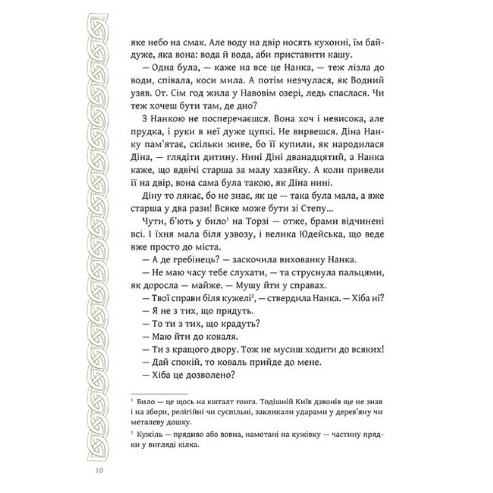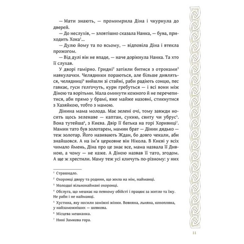 Влітку 2017 року, під час розкопок на київському Подолі, археологи виявили свинцеві форми для виготовлення «ніби справжніх візантійських золотих монет». Хто виготовив їх майже тисячоліття тому? Для кого? Ця книжка — спроба знайти відповідь і відтворитидавню детективну сторінку з життя княжого Києва. Побачимо тут знаних персон — князя Ярослава Мудрого, княгиню Інгігерду, князівну Елісів, її нареченого Гаральда Суворого та багатьох інших, менш відомих. Але головною героїнею оповіді стане киянка Діна — юна й водночас старша за Софію Київську донька воїна і племінниця ювеліра. Разом із Діною ми пройдемо чимало пригод — небезпечних і цікавих, побачимо дива і повсякдення минулого часу і, певно, зануримося в історію. Адже вона завжди поруч. Історична повість для дітей середнього шкільного віку, дія якої відбувається в середньовічному Києві. Юні читачі отримають змогу зануритися в дивовижний світ минувшини, незвичне сучасному вуху мовлення героїв, їхні вірування й забобони… Неперевершені двоколірні ілюстрації Макса Розенфельда є окремим арт-об’єктом і розцвічують полотно оповіді неймовірними цікавими подробицями. Для всіх, кого цікавить історія нашого краю.Автор: Олексій Гедеонов — письменник, живе і працює у Києві. Соціолог за фахом, цікавиться історією та мистецтвом. Автор романів «Випадковому гостю» і «Дні яблук», що оповідають про химерні й дивні Львів та Київ, якими вони були наприкінці 1980-х. Олексій є лавреатом Одеської міжнародної літературної премії ім. Ісаака Бабеля, отримав Гран-прі конкурсу «Активація слова».
