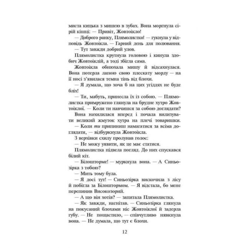 Четверта книга третього циклу «Сила трьох» серії світового бестселера «Коти-вояки».Усі троє обраних дізналися про пророцтво. Однак це знання стає для них тягарем. Сила, яку вони отримали, настільки потужна, що її складно контролювати. До того ж між Кланами зростає напруга. Вітряні вояки все частіше полюють на Громовій території, нехтуючи вояцьким правильником. Це вже не просто порушення кордонів, це виклик. Темрява загрожує поглинути чотири Клани, зруйнувавши все, у що вони вірили. Чому їм не допоміг Зореклан? Невже відтепер світ лісових котів зміниться назавжди?Переклад з англійської — Катерина Дудка, Остап Українець. Оформлення — Олег Панченко. При перекладі тексту українською для опису загального устрою котячих кланів та громадянства їхніх членів була використана термінологія Національної скаутської організації України «Пласт».Чому варто читати:Продовження пригодницької серії про вже знайомих читачам котів-вояків. Книги серії мають поціновувачів в Англії, США, Німеччині, Франції, Іспанії, Італії, Польщі, Чехії, Росії, Японії, Китаї… — понад 30 000 000 читачів й фанів у всьому світі!Автор:Серія «Коти-вояки» створена британськими письменницями Кейт Кері, Черіт Болдрі, Тай Сазерленд у співавторстві з редактором Вікторією Голмс під загальним псевдонімом Ерін Гантер. Серія видається у Великій Британії з 2003 року і дотепер. Вона потрапила до списку світових бестселерів за версією «Нью-Йорк Таймс» і стала популярною у багатьох країнах світу.