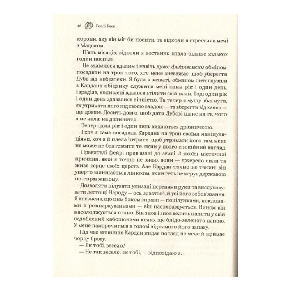 Джуд перетворила розбещеного й байдужого принца Кардана на маріонетку у своїх руках. Тепер, коли він став правителем, маніпуляторка контролює всі його вчинки і стоїть за кожним його рішенням. Одначе Джуд балансує на тонкій кризі, щомиті ризикуючи власною головою. А тим часом народ Краю Фейрі розпочав гру, яка обернулася серйозною небезпекою для Джуд і Кардана. Дівчина не має ані друзів, ані прибічників. Безжальне лезо смертоносного клинка вже нависло над її шиєю. Та найболючішим ударом для Джуд стало розчарування, яке приніс їй Кардан: жорстокий принц перетворився на лихого короля. Ніхто у Краю Фейрі, навіть сама Джуд, не здогадується, чого їм чекати від його правління...