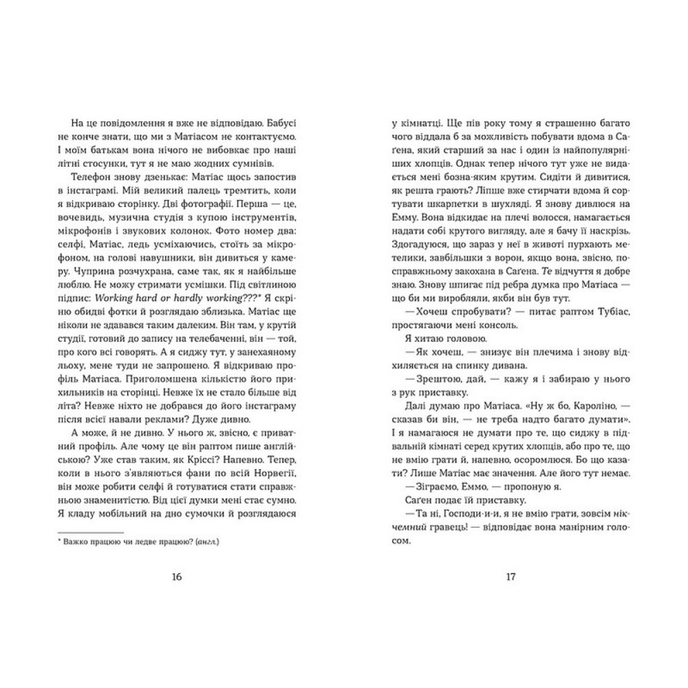 Здається, кохання, яке зародилося влітку і якому поклало край завершення канікул, переслідує Кароліну. Раптом вона бачить фото Матіаса, хлопця, з яким познайомилася на кемпінґу, на гігантському плакаті «Фабрики зірок» біля місцевого супермаркета. Матіас відтепер — «омріяний хлопець усіх нордичних країн»!Наче цього бракувало, хтось ще й викладає в інтернеті літні фото Матіаса з Кароліною, і дівчинка несподівано опиняється в центрі дуже небажаної уваги від фанатів шоу, преси і навіть однокласників. Тепер їй потрібно відновити контакт із Матіасом і зрозуміти, яке життя обрати. Чи зможе Кароліна бути коханою знаменитості і підтримувати Матіаса на цьому шляху?