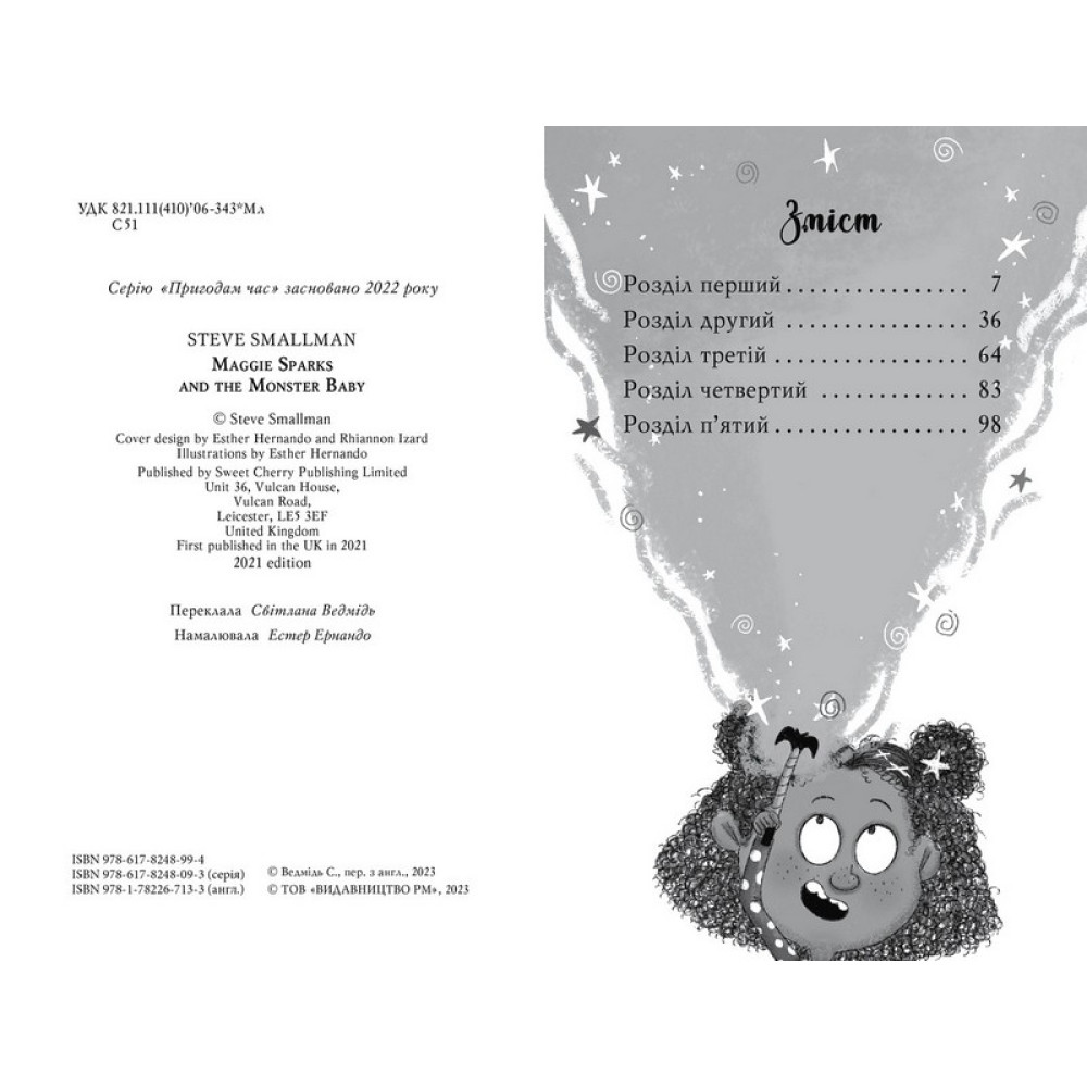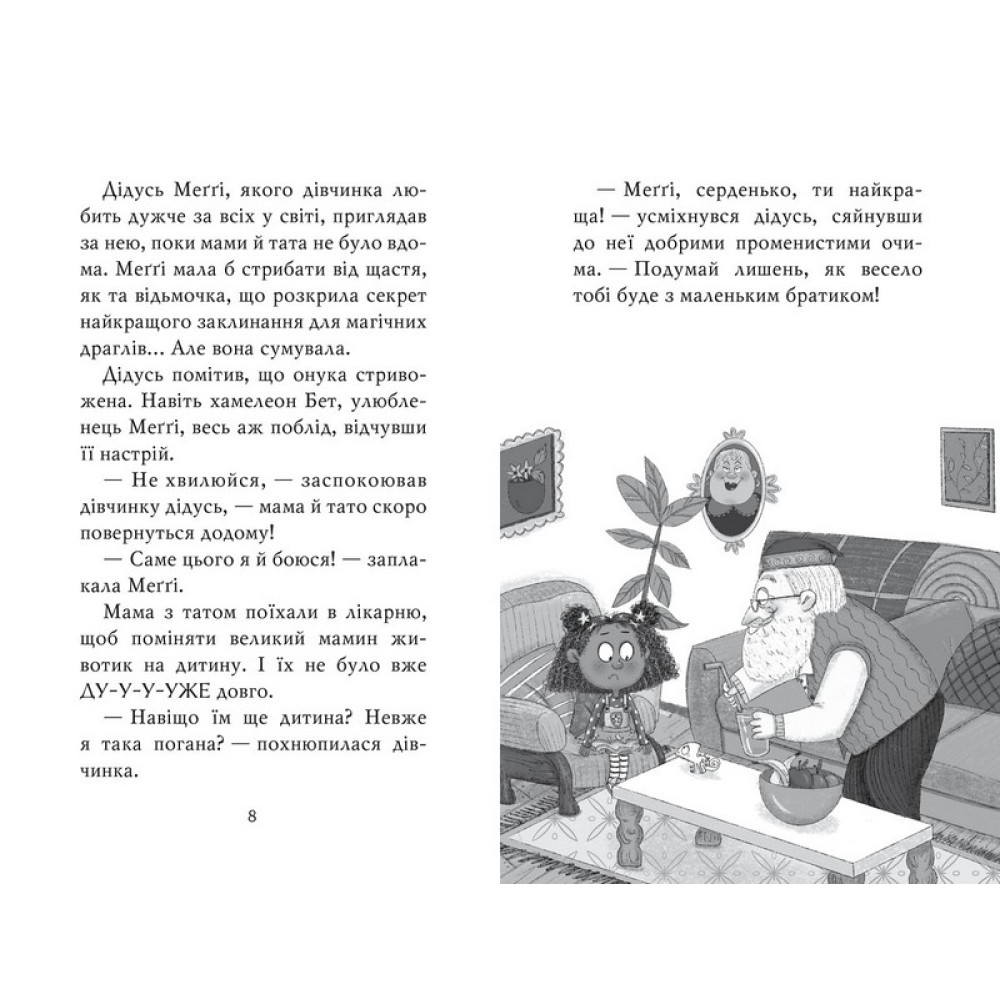 У Меґґі Спаркс з’явився маленький братик! Але як полюбити такого галасливого себелюбного смердюха? Добре, що Меґґі чаклунка. Дуже кмітлива й талановита чаклунка… яка іноді помиляється в замовляннях. Та хіба це завадить їй повернути увагу батьків, яку поглинуло МАЛЕ ЧУДОВИСЬКО? Адже Меґґі не сама, їй допомагає вірний друг — улюбленець-хамелеон. Дівчинці потрібно лише трошки чарів…
