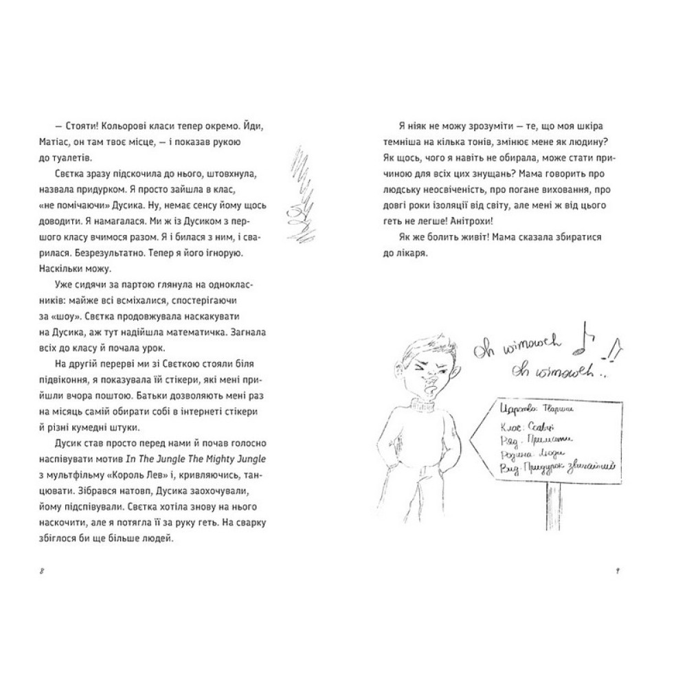 Марія-Валентина Мороз-Матіас — столична школярка, донька українця й домініканки. Від своїх однолітків вона відрізняється хіба що шкірою, темнішою на кілька тонів. Однак ця деталь стає приводом для насмішок однолітків.Книжка написана у формі щоденника, у якому дівчинка міркує над буденними і винятковими ситуаціями свого життя. Переживати прикрощі їй допомагає сім’я, друзі й улюблене заняття — малювання. І навіть коли життя робить крутий поворот, виявляється, що за ним — лише цікаві відкриття, а можливо, навіть здійснення мрій.