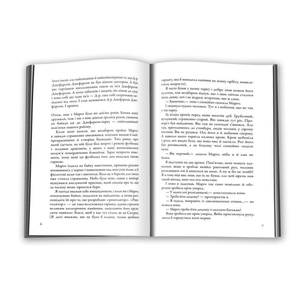 Усе життя Квентин був здалеку закоханий у свою дивовижну сусідку — Марго Рот Шпігельман. Тож коли вона, одного дня відчинивши знадвору вікно в його кім-нату, прокрадається в його життя, втягуючи в неймовірні пригоди, Квентин не може їй опиратися. Але ніч пригод закінчується, і на другий день у школі Квентин з’ясовує, що загадкова Марго таємничо щезла. А незабаром вияв-ляється, що Марго залишила для нього підказки, і тепер саме він має відшукати дівчину, яку, йому здавалося, він так добре знав... Черговий бестселер Джона Гріна, автора романів «Провина зірок» і «В пошуках Аляски», не залишить читачів байдужими.