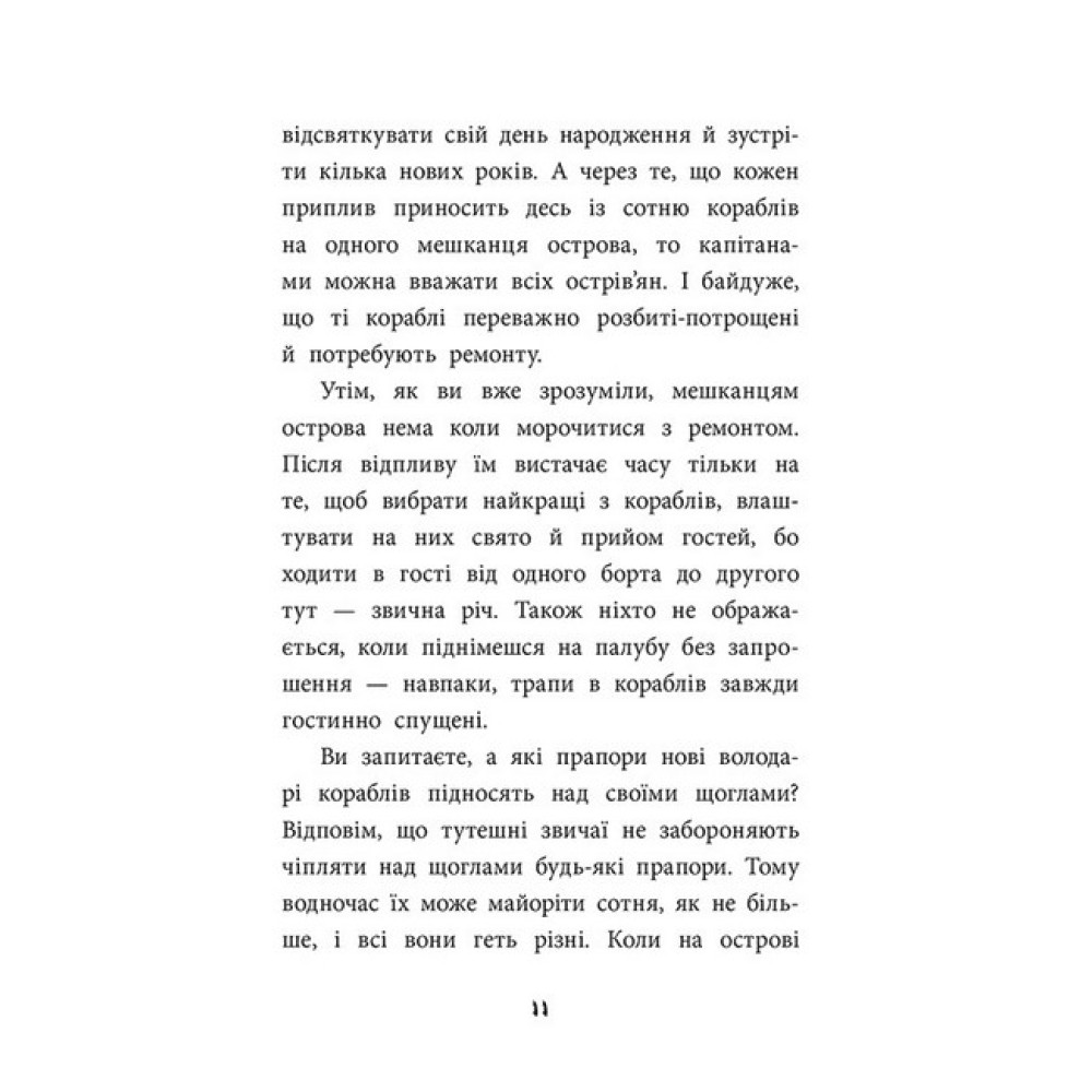 Чого тільки не траплялося в житті капітана Страха, якого, подейкували, уникала навіть власна тінь! А хіба може бути інша доля в людини, яка народилася на острові, де горіхова шкаралупа легко править за човен? Чого тільки не доведеться робити нашому герою в цій книжці… На характер перекривляти один одного з пацюком, сідлати хвилю й летіти прямісінько до Місяця, долучатися до змагань за найпишнішу бороду з геть неочікуваним результатом… «Хоч би не схибити!» — думає капітан Страх і з головою пірнає в захопливі пригоди. Ходімо за ним! Адже чудернацька небувальщина, перетворена на найреальнішу реальність, не дозволить сумувати. Гуррра! «Правдиві історії про піратів» — захопливе ілюстроване видання сповнене дотепних жартів та цікавих пригод. Цю книгу залюбки читатимуть як хлопчики, так і дівчата. «Ми з синами качаємося від сміху після кожного абзацу. Гумор такий потужний і несподіваний…»- Юрій Журавель, лідер та вокаліст гурту «Ot Vinta!», художник, аніматор, громадський діяч, актор і сценарист «Автор пише легко й цікаво, а ще підкидає дещо пізнавальне, наприклад, слова з філіппінської мови, неймовірні піратські звичаї: чому у південних морях листи відправляють у пляшках, чи можуть принцеси ставати піратками тощо. Словом, прочитаєте — і за короткий час зловите себе на тому, що вже виспівуєте піратський гімн».- Оксамитка Блажевська, письменниця, книжкова блогерка, піарниця та засновниця «Літературного клубу Оксамитки» Автор: Жак Жаб’є — український дитячий письменник, викладач, автор посібників та довідників з економіки, громадський діяч.