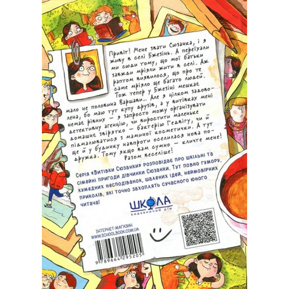 Родина малої Сюзанки переїхала у село Бжезінь, бо її батьки завжди мріяли жити в селі. Аж раптом виявилося, що про те саме мріяло ще багато людей. Тож тепер у Бжезіні мешкає мало не половина Варшави… Але дівчинка цілком задоволена, бо має тут купу друзів, а у витівках їй немає рівних — то вона організовує детективну агенцію, то вирощує маленьке домашнє звірятко — бактерію Гедвігу, то підмальовується з маминої косметички. А тут ще й у будинку навпроти оселяється нова подружка. Тому якщо вам сумно — кличте Сюзанку!