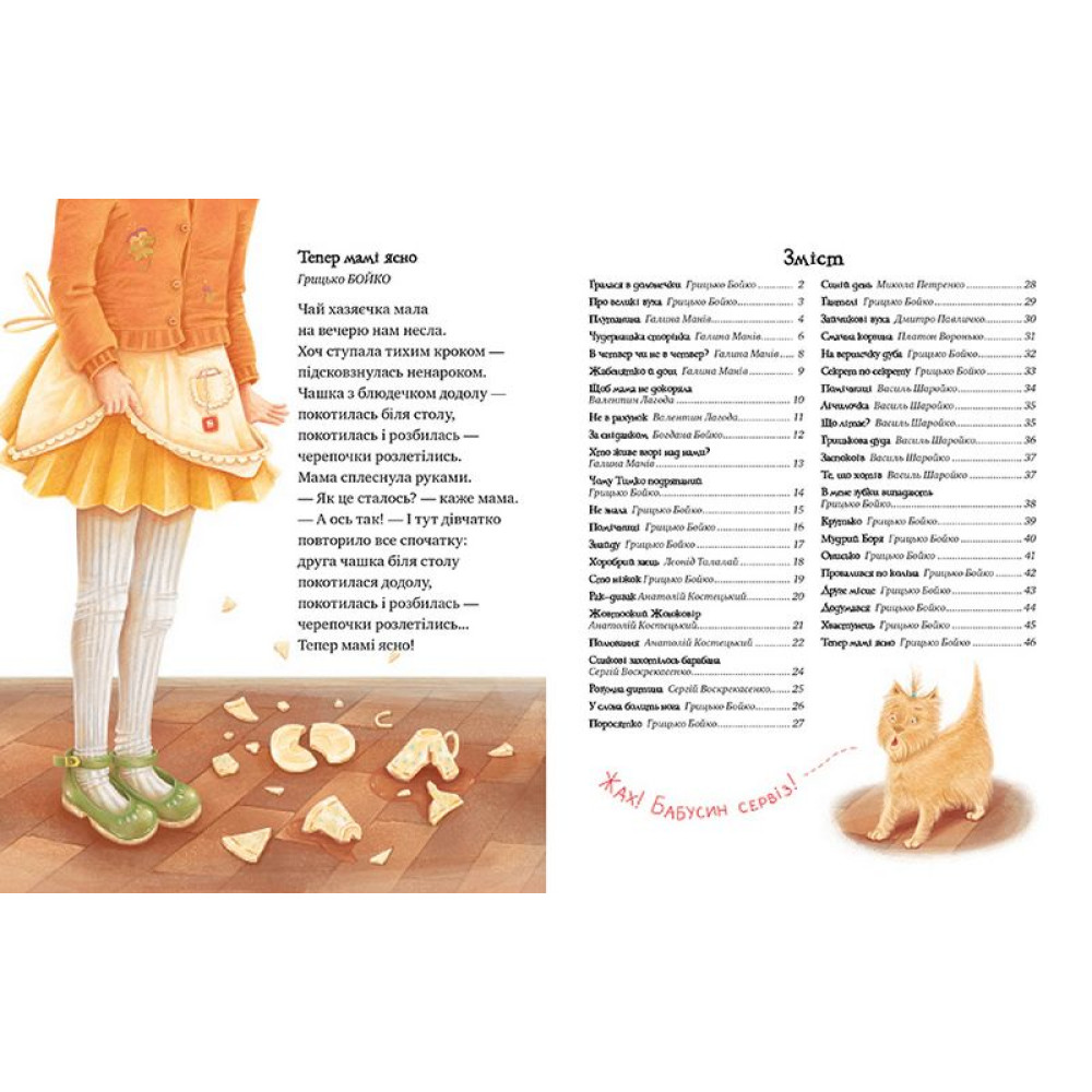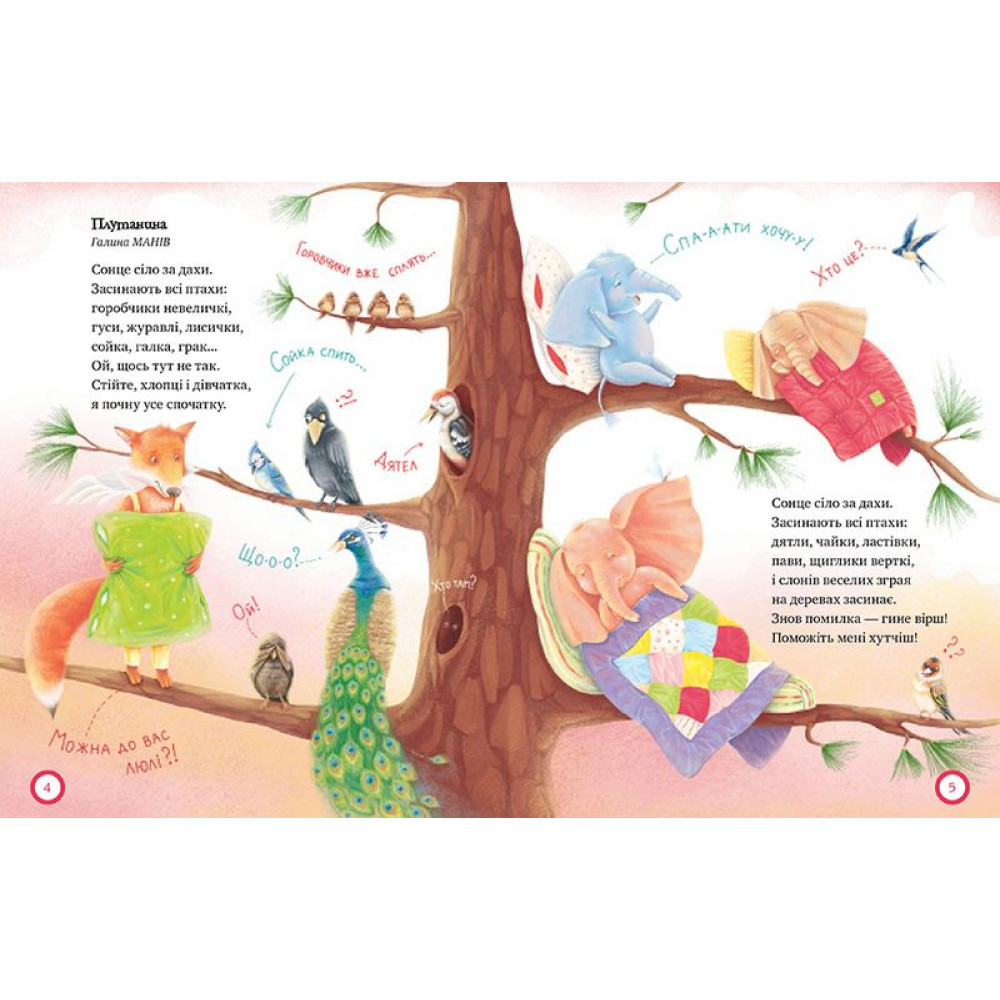 Як приємно довгими зимовими вечорами вмоститися в затишку поруч із мамою чи з татом, із бабусею чи з дідусем і розгорнути книжечку, щоб прочитати жартівливі вірші та роздивитися яскраві малюнки до них! Це ж справжнісінький чарівний книжковечір! Хочеш дізнатися, що робить жабенятко, щоб не змокнути на дощі? А на кого полюють серед ночі три сміливі мишки? Або про те, як малий Грицько заліз на вершечок дуба? І ще про всі-всі кумедні пригоди малят і звірят? То вмощуйся зручніше та мерщій розгортай цю книжку!