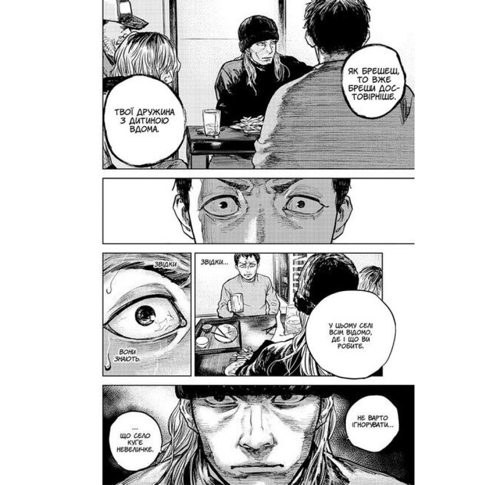 Дільничного поліцейського Аґаву Дайґо призначено на службу в гірському селі Куґе. Мешканці тепло й поблажливо прийняли його та сім’ю. Однак після нещасного випадку з однією літньою пані Дайґо все більше помічає, що в поселенні кояться якісь аномальні речі. І в нього виникає страшна підозра…Злочини не припиняються, у поселенні панує атмосфера ненависті… Перед вами розгортається моторошний трилер, просякнутий жорстокістю й остракізмом, — і він змусить тремтіти, ні на мить не даючи перевести дух!«МЕШКАНЦІ СЕЛА ЇДЯТЬ ЛЮДЕЙ.»