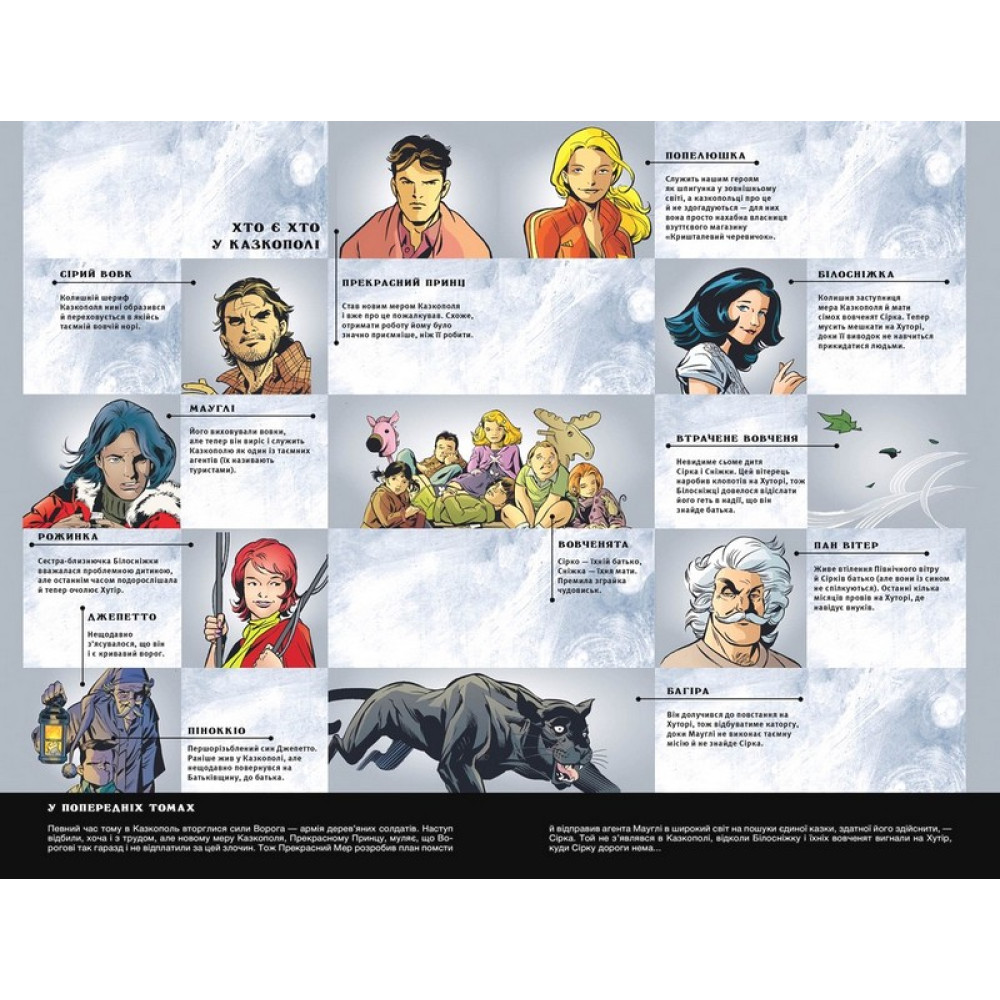 Казкова громада, що потай живе серед нас, немало настраждалася від рук свого давнього суперника — Ворога. Та настав час відплатити й показати завойовнику, що ціна підкорення останнього вільного бастіону чарів буде зависокою навіть для нього. Проте єдина казка, спроможна виконати цю місію, ховається у якихось нетрях. І навіть якщо його вдасться знайти, то доведеться добряче попрохати, щоб він погодився виконати завдання. На щастя для Казкополя, після повернення на Сірого Вовка чекає не лише вилазка в тил ворога...«КАЗКИ: ВОВКИ» Білла Віллінґема охоплюють 48–51 розділи премійованої серії. До тому також увійшли новісінькі карти Казкових територій у Прозаїчному світі та повний оригінальний сценарій Віллінґема до переломного 50-го розділу.