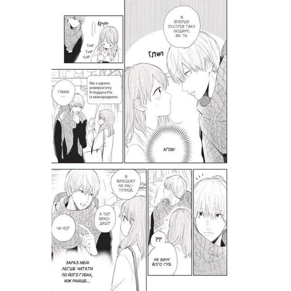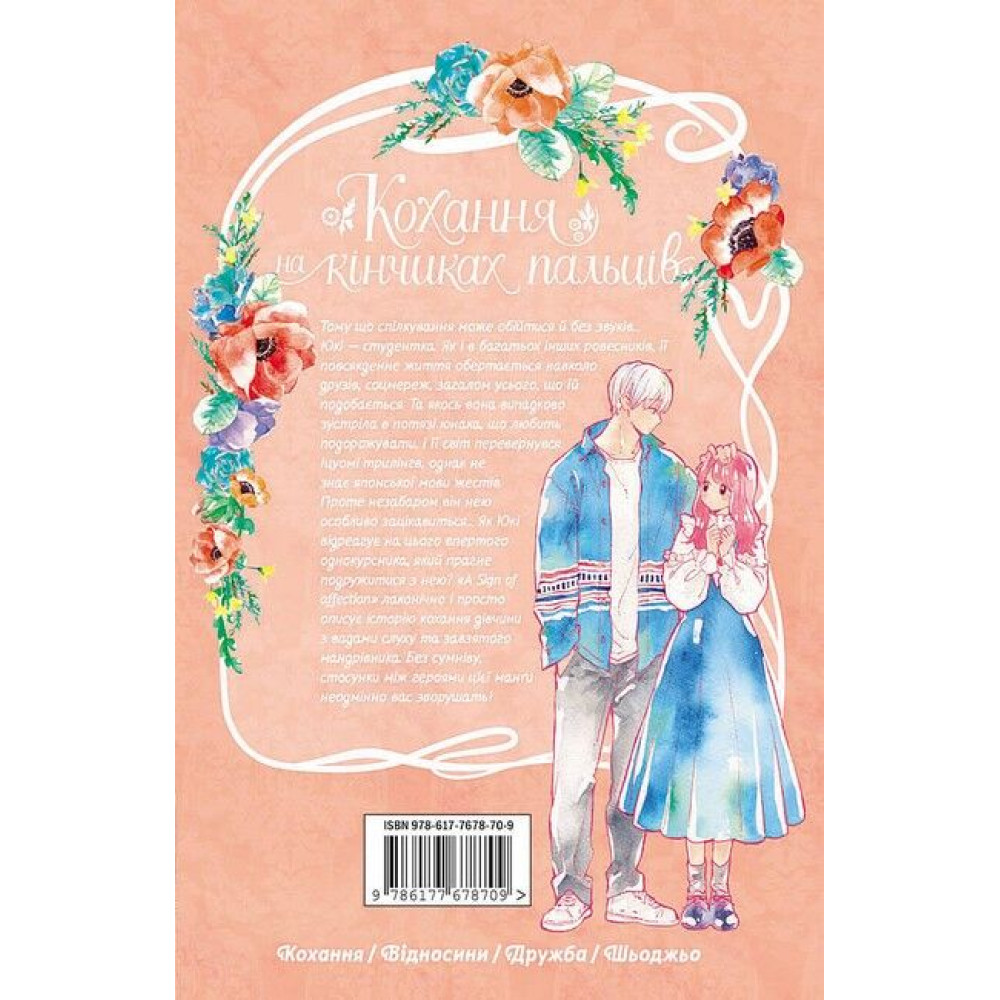 Юкі — студентка. Як і в багатьох інших ровесників, її повсякденне життя обертається навколо друзів, соцмереж, загалом усього, що їй подобається. Та якось вона випадково зустріла в потязі юнака, що любить подорожувати, і її світ перевернувся. Іцуомі трилінгв, однак не знає японської мови жестів. Проте незабаром він нею особливо зацікавиться… Як Юкі відреагує на цього впертого однокурсника, який прагне подружитися з нею? «A Sign of affection» лаконічно і просто описує історію кохання дівчини з порушенням слуху та завзятого мандрівника. Без сумніву, стосунки між героями цієї манґи неодмінно вас зворушать!