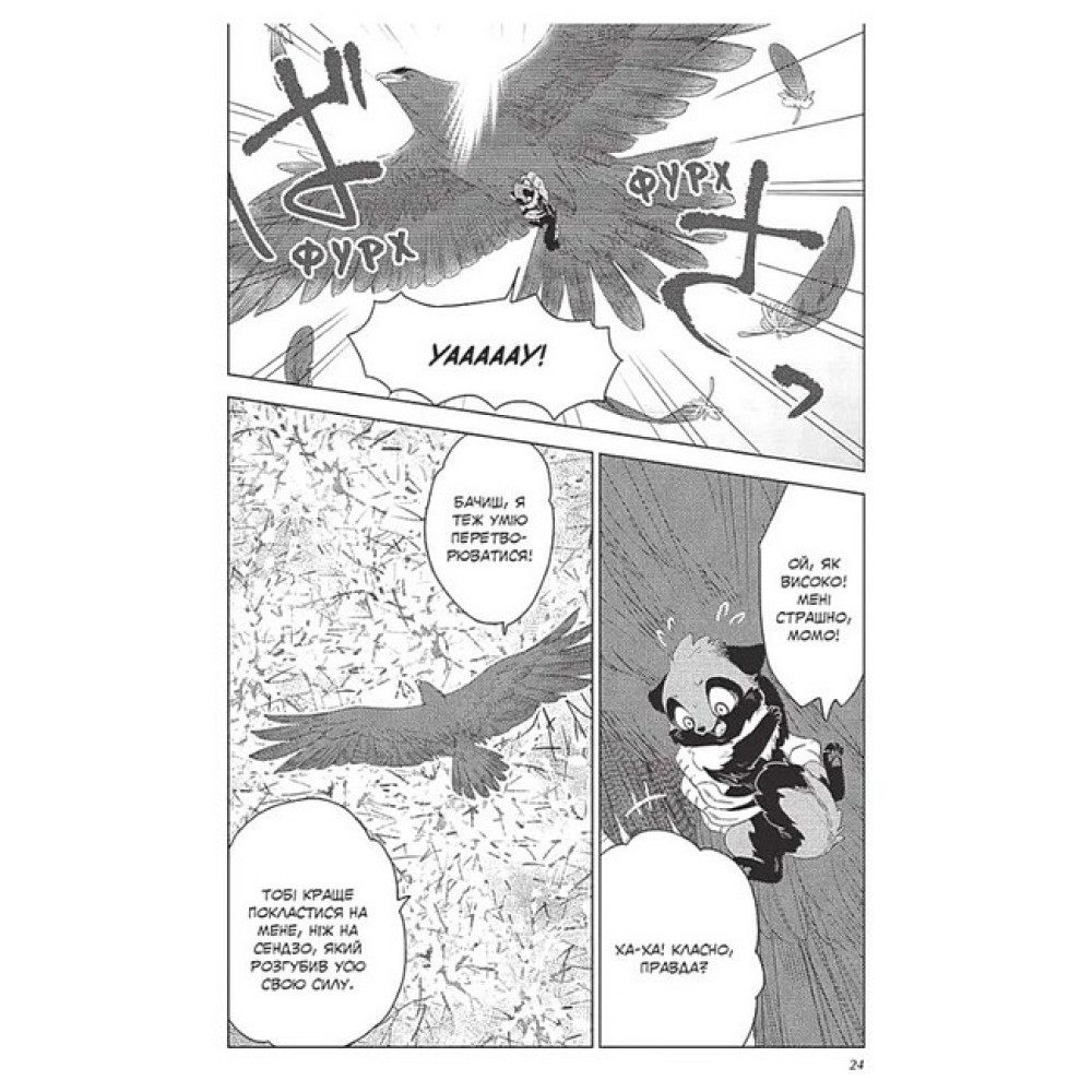 Легенди розповідають, що чорний лис Сендзо — один із найгрізніших і наймогутніших духів-бакемоно, які лише ступали по цій землі. Принаймні таким він був колись. Тепер же, після трьохсотлітнього ув’язнення, Сендзо геть не грізний. Його силу стримує спеціальне намисто, яке вдягнула на нього Богиня сонця. І так і буде, поки він не виконає завдання — виростити й виховати Манпачі, маленького танукі, обранця богів. Проте на довірливого малюка чигають небезпеки й вороги. Зокрема, піступний борсук-бакемоно, який заманив Манпачі в пастку… Сендзо мусить урятувати підопічного, чиєю долею починає перейматися по-справжньому.