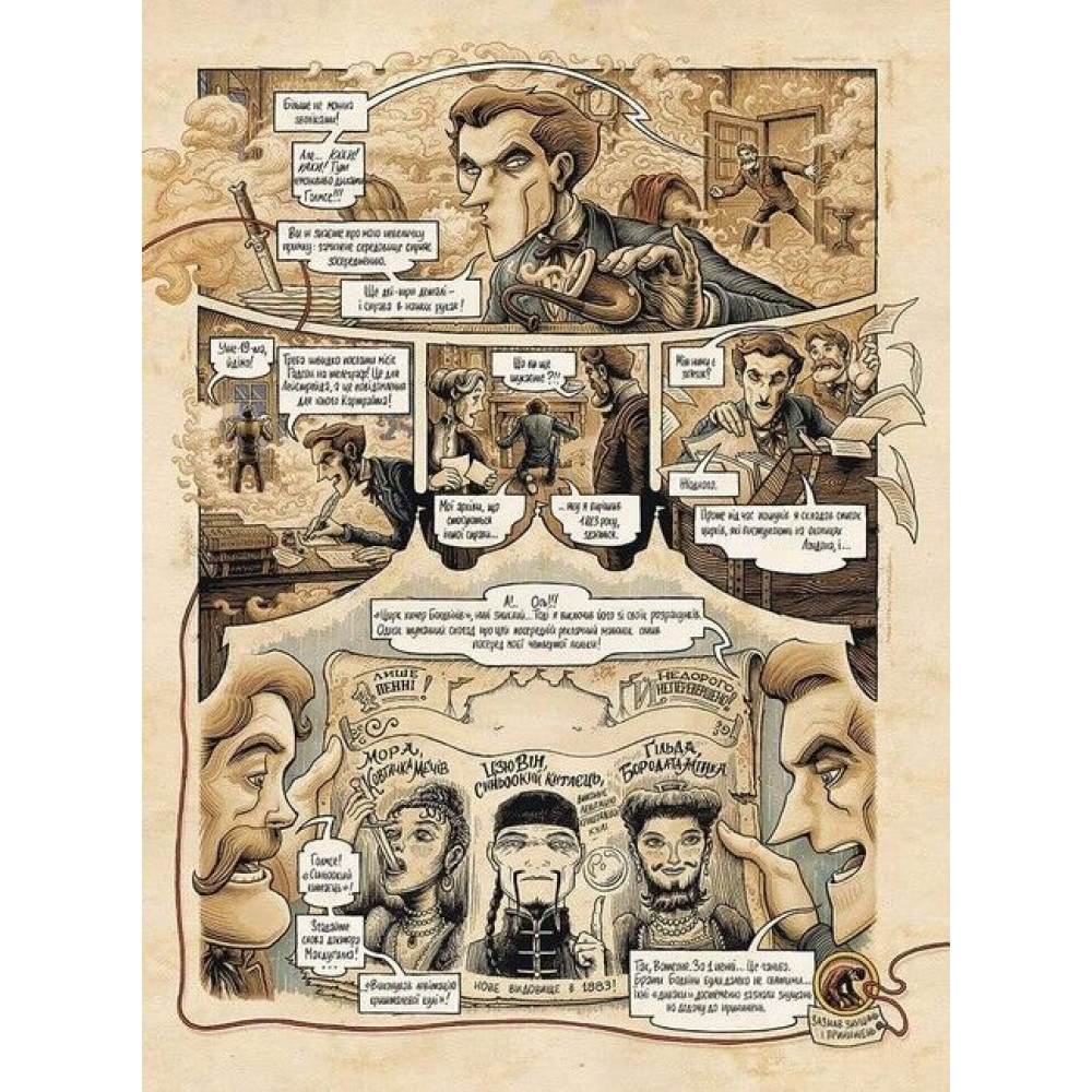 Дрібні деталі-підказки, кольористика і навіть текстури – «У голові Шерлока Голмса» все чудово впорядковано. Ще зовсім трішки і детектив розкриє цей загадковий злочин, який почався зі звичайного лікарського огляду. Поки Шерлок Голмс та доктор Вотсон пильно йдуть слідом китайського чарівника, та стається новий злочин. Цього разу жертва – міністр! Зловмисник вирішив підняти ставки, тож тепер спіймати його вже стало справою честі для джентльменів-детективів. Та, схоже, в цього мага не один туз в рукаві. Та й у голові Шерлока чимало трюків, які можуть стати у пригоді. От тільки детектив ще ніколи не стикався з лиходієм настільки загадковим та хитрим. Хто переможе у цьому протистоянні характерів? І яким же був мотив?