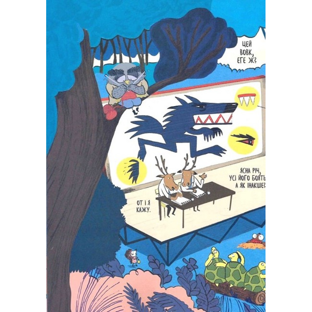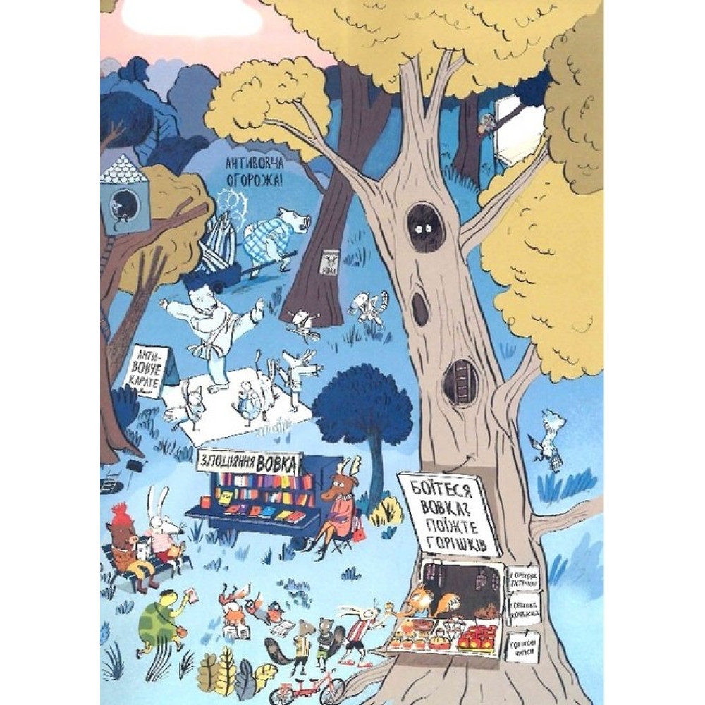 Усі в лісі боялися Вовка. Ці люті очиська, ці величезні зубиська… Чого тільки не вигадали інші звірі, щоб вберегтися від лютого агресора. Щоденні рейди антивовчої бригади, антивовчі сітки, щоб вберегти домівку, лісова газета, яка детально описує кожен злочин зубатого убивці… Все у лісі працювало на стримування Вовка. Та коли одного дня Вовк спустився зі своєї скелі, одягнутий у милі плетені труси, його спочатку не впізнали. Де злючі очиська? Нема, тільки добрий погляд. Де величезні зубиська… А ні, вони на місці. Невже весь цей час звірі звинувачували не того? Невже весь цей час вони кричали: «Вовк!», хоч насправді боятися треба було когось іншого? Кого ж тоді? Адже троє поросят зникли… Ідеальний подарунок для вашої малечі