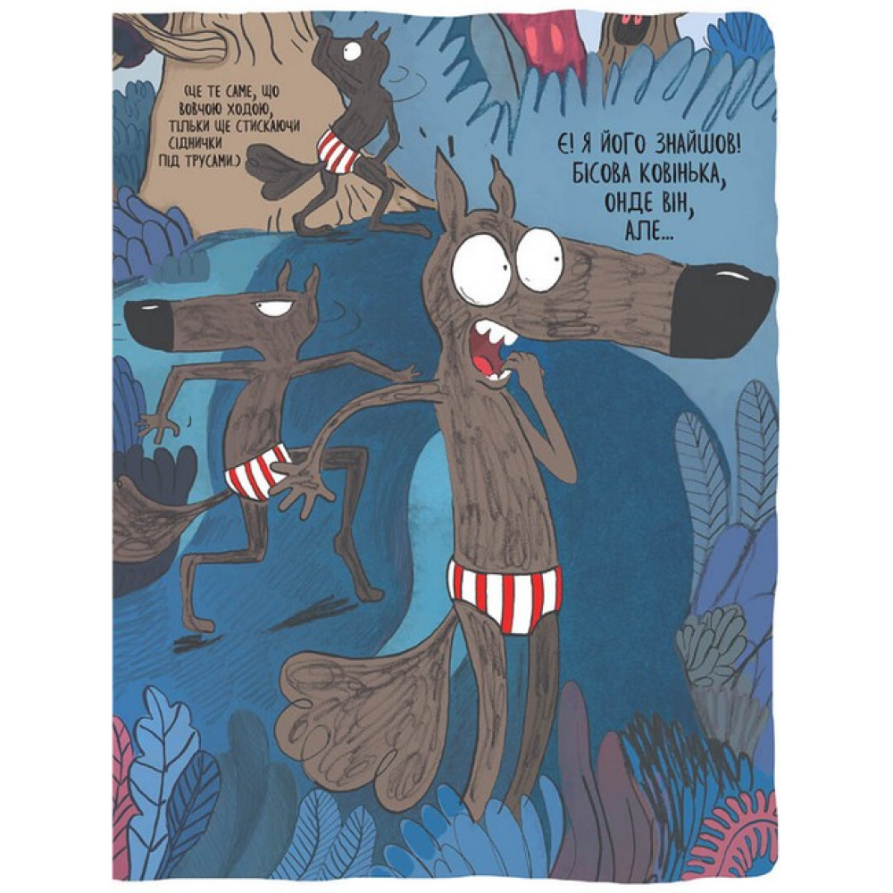 «Якщо не віриш у себе, вір у мої труси!» В лісі готуються до великих перегонів, де найшвидші крилаті покажуть, хто з них гідний підняти над головою трофей. От тільки невідомий хуліган взявся псувати афіші і розмальовувати їх образливими написами. Добре, що в лісі є антивовча бригада, яка легко перетворилася в антивандальну. Але їй не під силу подолати зухвалого хулігана. Єдина надія на Вовка в трусах — супергероя, дупці якого більше не холодно. Чи знайде Вовк вандала? Чи зрозуміє його мотиви? Так і так. І що допоможе йому в цьому? Модний аксесуар, подарований мудрою совою.