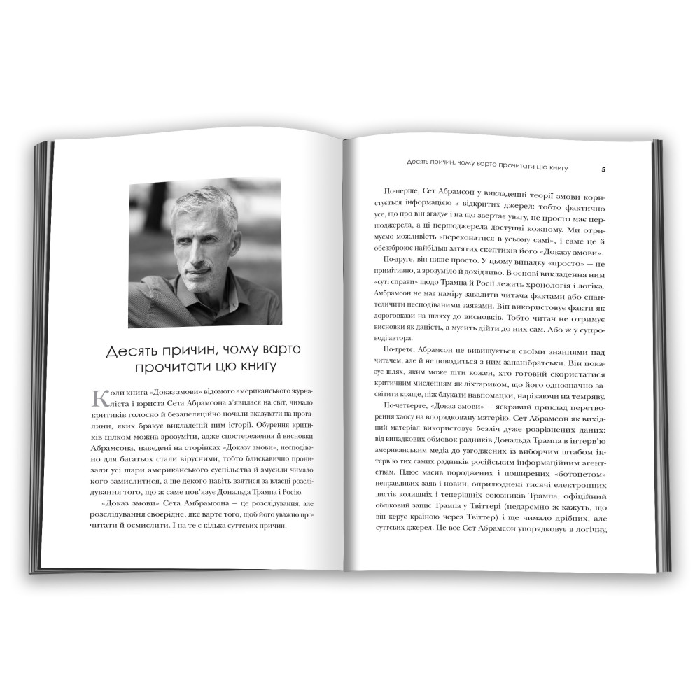 Перший вичерпний і вибухонебезпечний виклад справи, що виходить за межі здорового глузду: як президент США в обмін на фінансову вигоду та приховану допомогу під час виборів скомпрометував зовнішню політику США. Переосмислюючи цей момент, історики запитуватимуть, чи знали американці, що їм випало пережити перший випадок злочинної змови між кандидатом в президенти Америки - по тому головнокомандувача, - й геополітичним ворогом. Ймовірна відповідь: було занадто складно осягнути всю картину. Інформація, що надходила з різних куточків земної кулі, часто звучала неправдоподібно: нелегальні зустрічі в іноземних столицях, секретні записи в московському готелі, проникнення агентів Кремля у найближче оточення Трампа. Сет Абрамсон відстежив кожен із цих далекосяжних звітів і нині, в "Доказі змови", він зрештою наводить нам докази незбагненного: президент, в обмін на фінансову вигоду та приховану допомогу на виборах, компрометує зовнішню політику США.